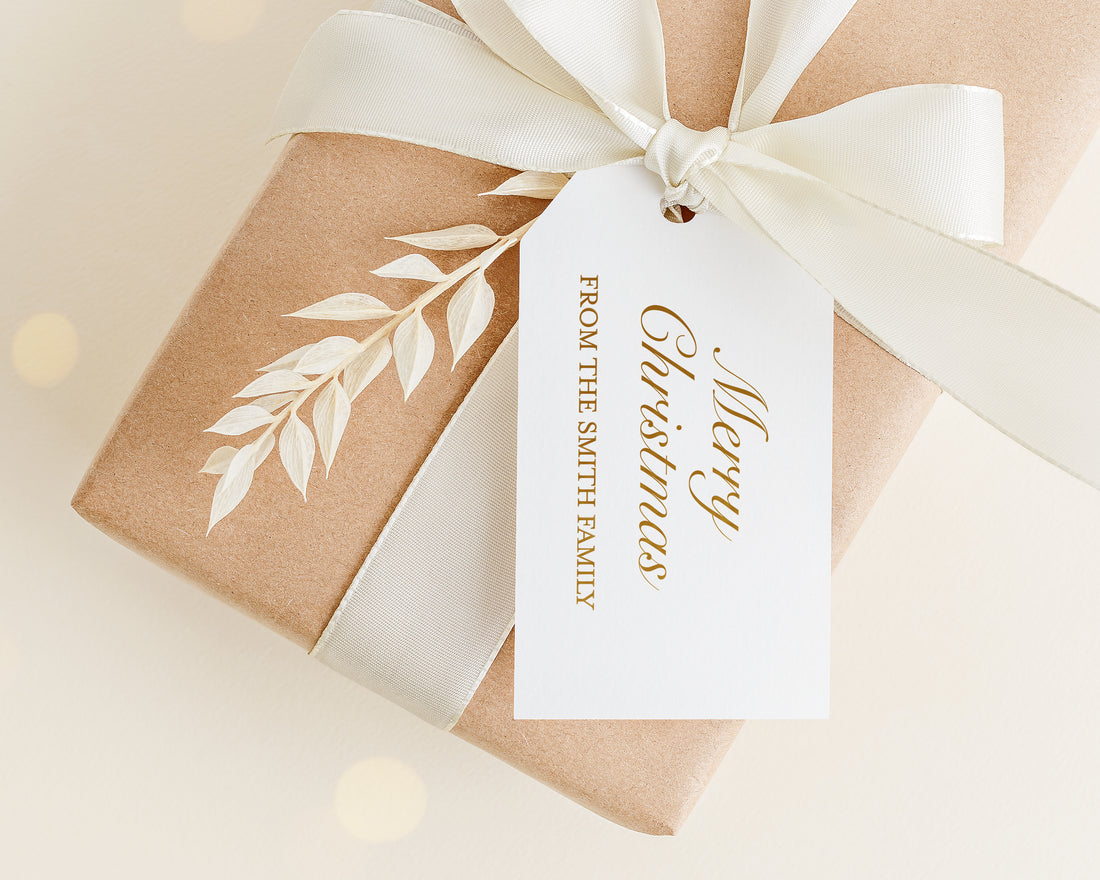 Personalized Merry Christmas Gold Foil Gift Tag, Wine Gifts Holiday Party Favor