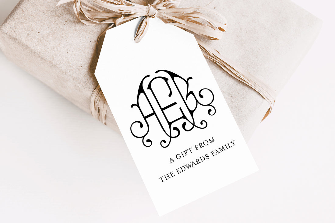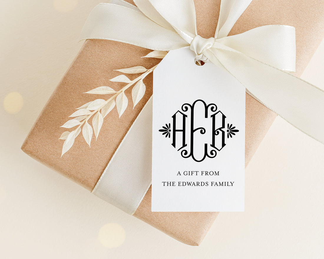 Personalized Monogram Gift Tags: Elegant Favor Tags, Set of 12