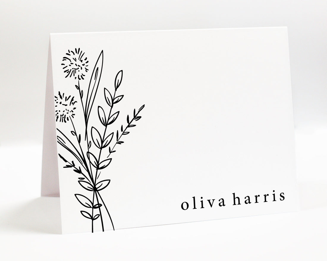 Personalized Folded Minimalist Stationary Cards Gift Set for Her, Simple Flat Notecard, Thank You Stationery Card Set Flat Note Envelope