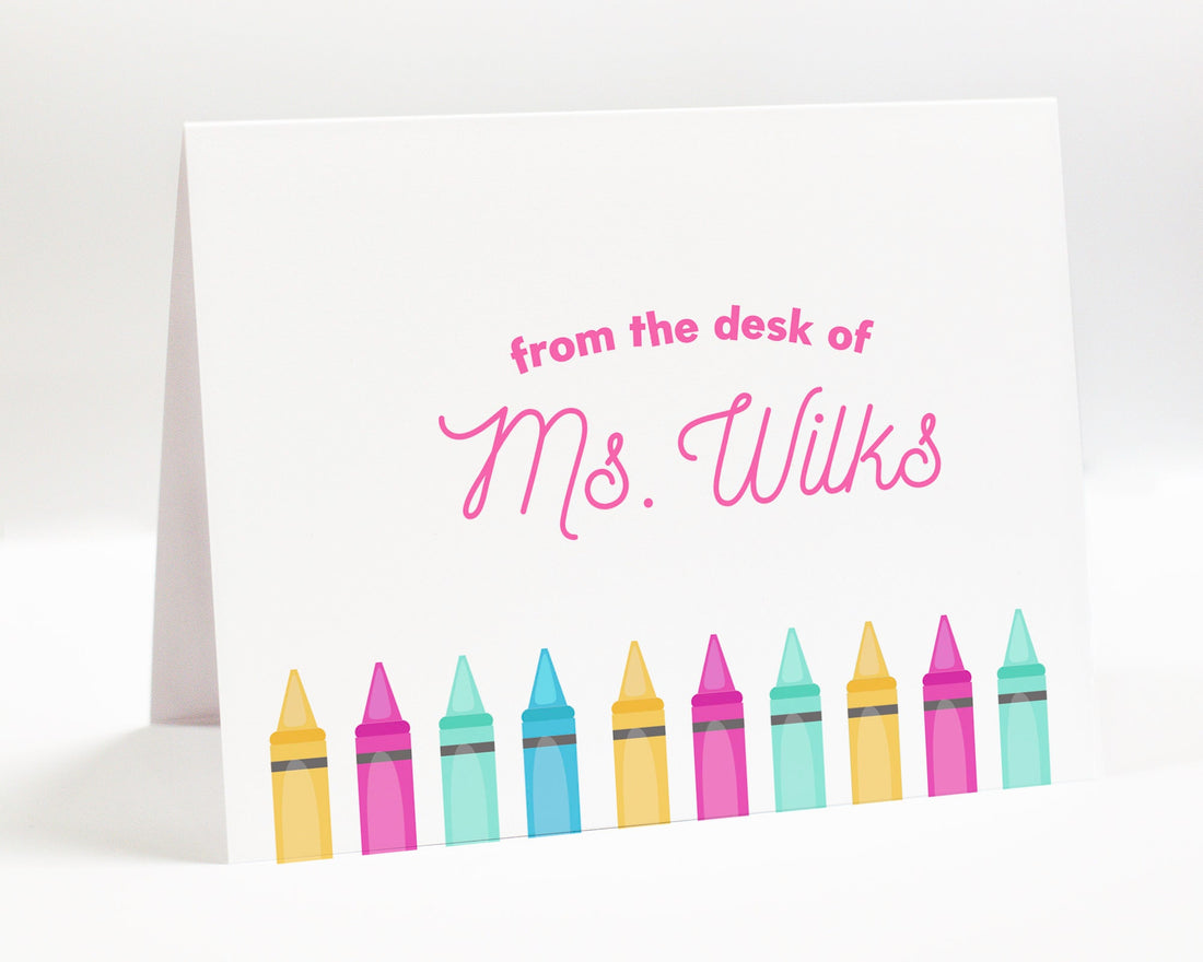 Personalized Notecards For Teacher Appreciation Gift, Stationary Card Gift Set with Crayons For Art Teacher, From The Desk of Thank You Card