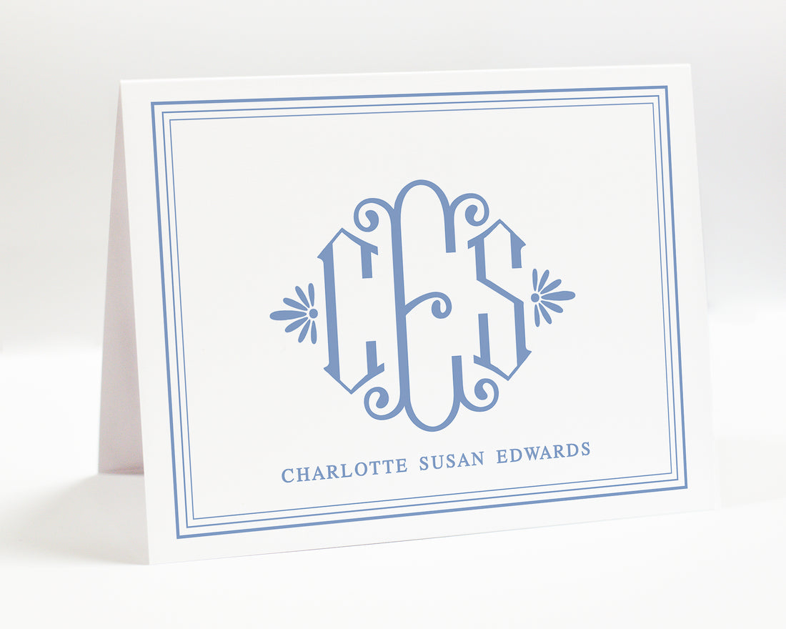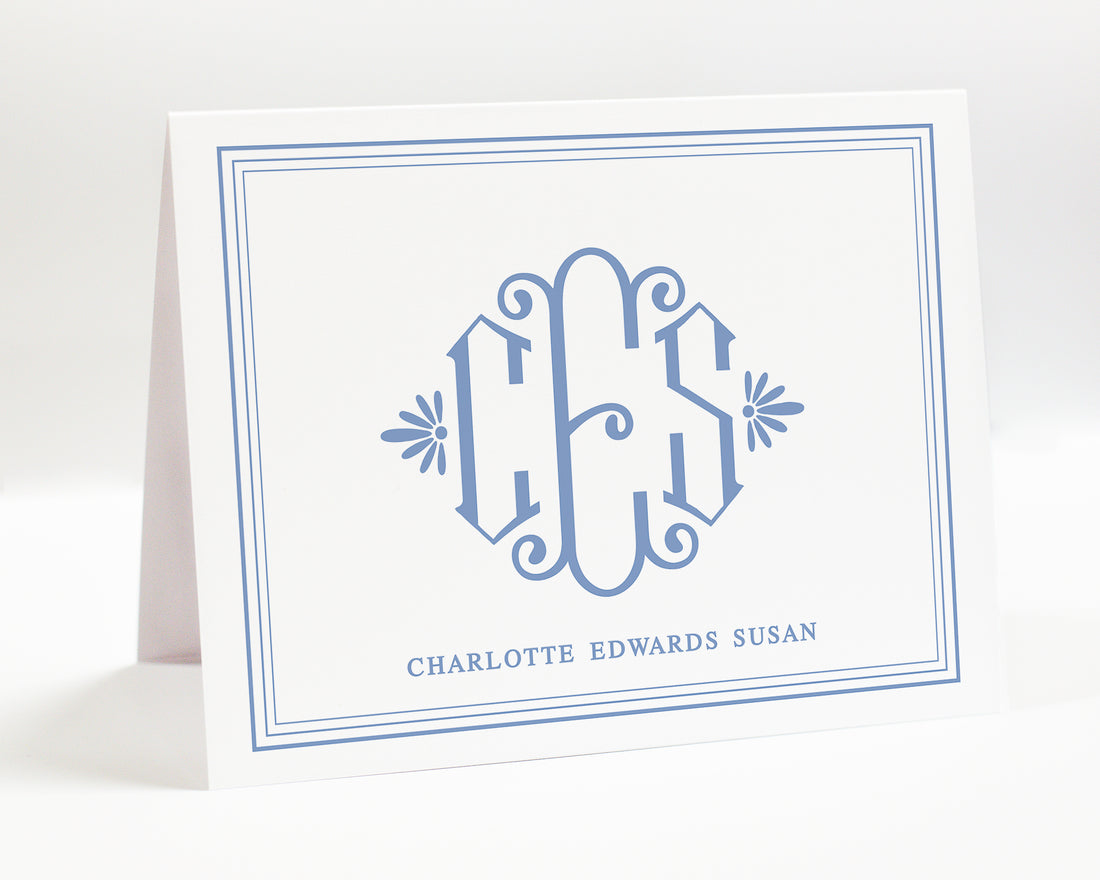 Personalized Folded Stationary With Monogram and Border, Thank You Notes with Monogram, Letter Greeting Card for Note Thank You Stationery
