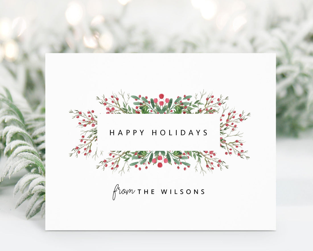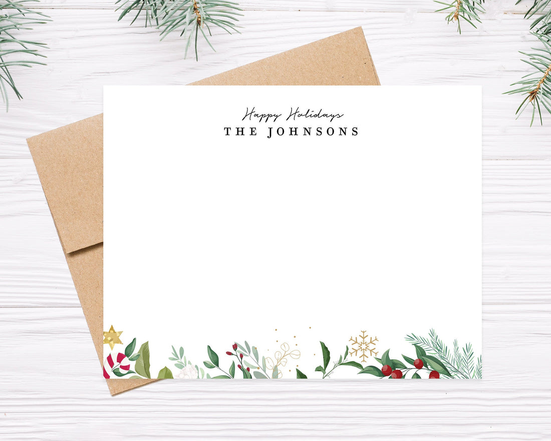 Personalized Happy Holidays Greeting Card Set, Custom Holiday Stationery for Family Notes, Thank You Cards with Envelopes for The Holidays