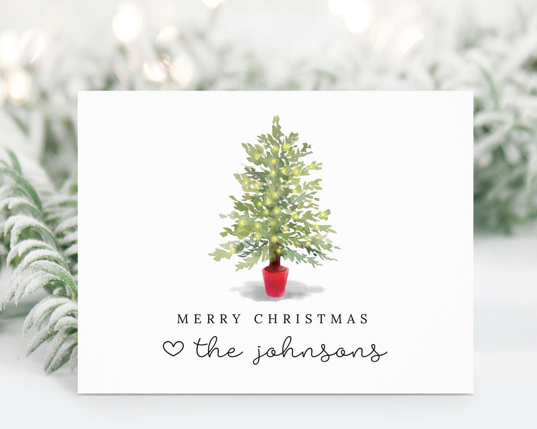 Personalized Christmas Card with Tree, Merry Christmas from the Family Stationary Letter, Holiday Stationery Set, Simple Christmas Card