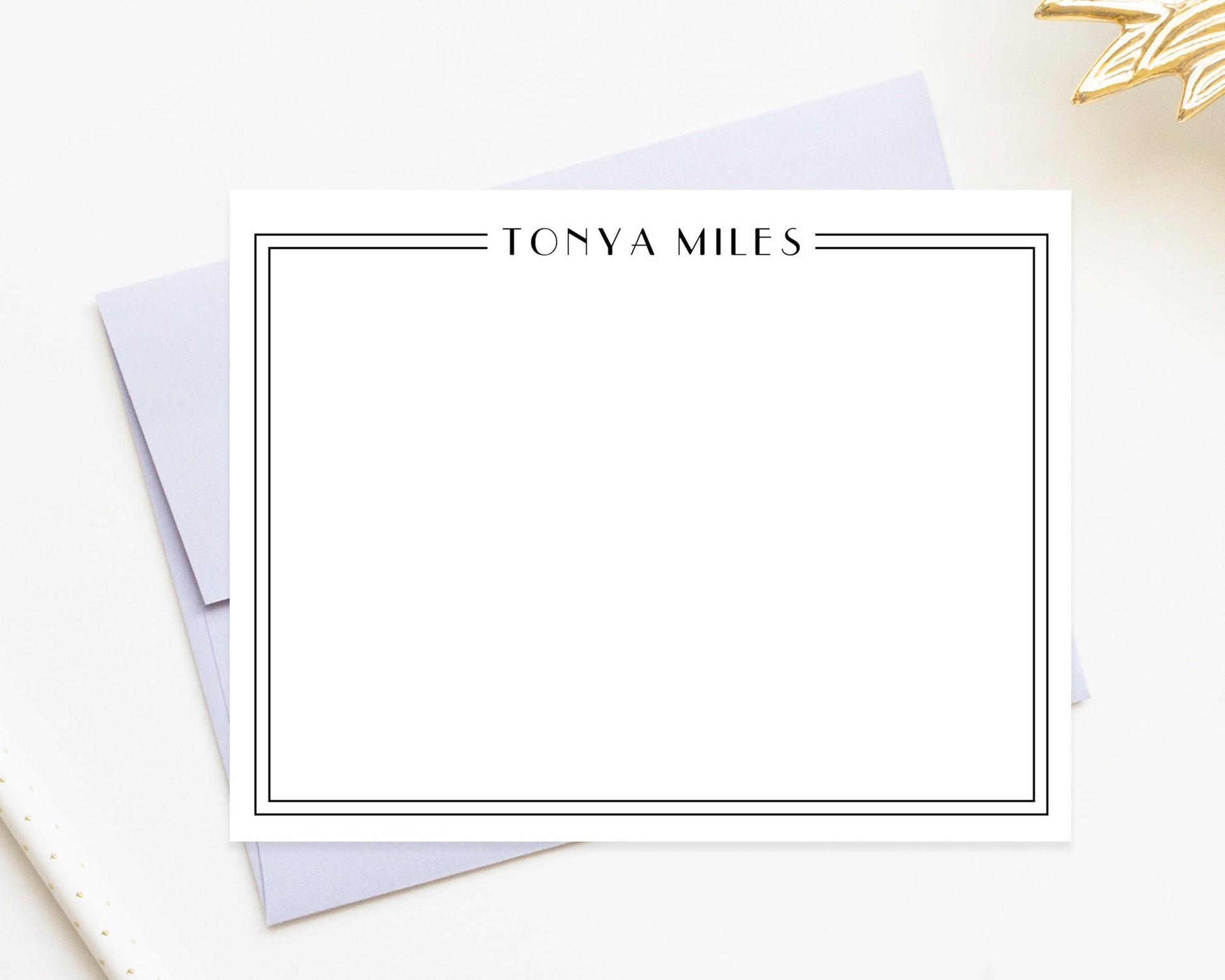 Art Deco Bordered Personalized Stationery Note Cards, Stationary For Women, Thank you Flat Cards, Personalized Notecards, Gift for Family