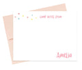 This is a set of personalized A2 sized stationery flat cards. Printed on premium 110 lb heavy cardstock with your choice of ink colors and envelope colors. Each set comes with the same number of envelopes.Β