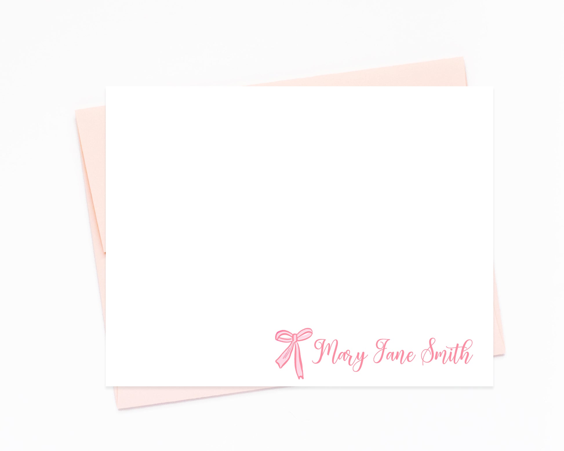 Personalized Stationary for With Pink Bow, Colorful Watercolor Stationary Set For Her, Stationery Gift for New Girl Mom