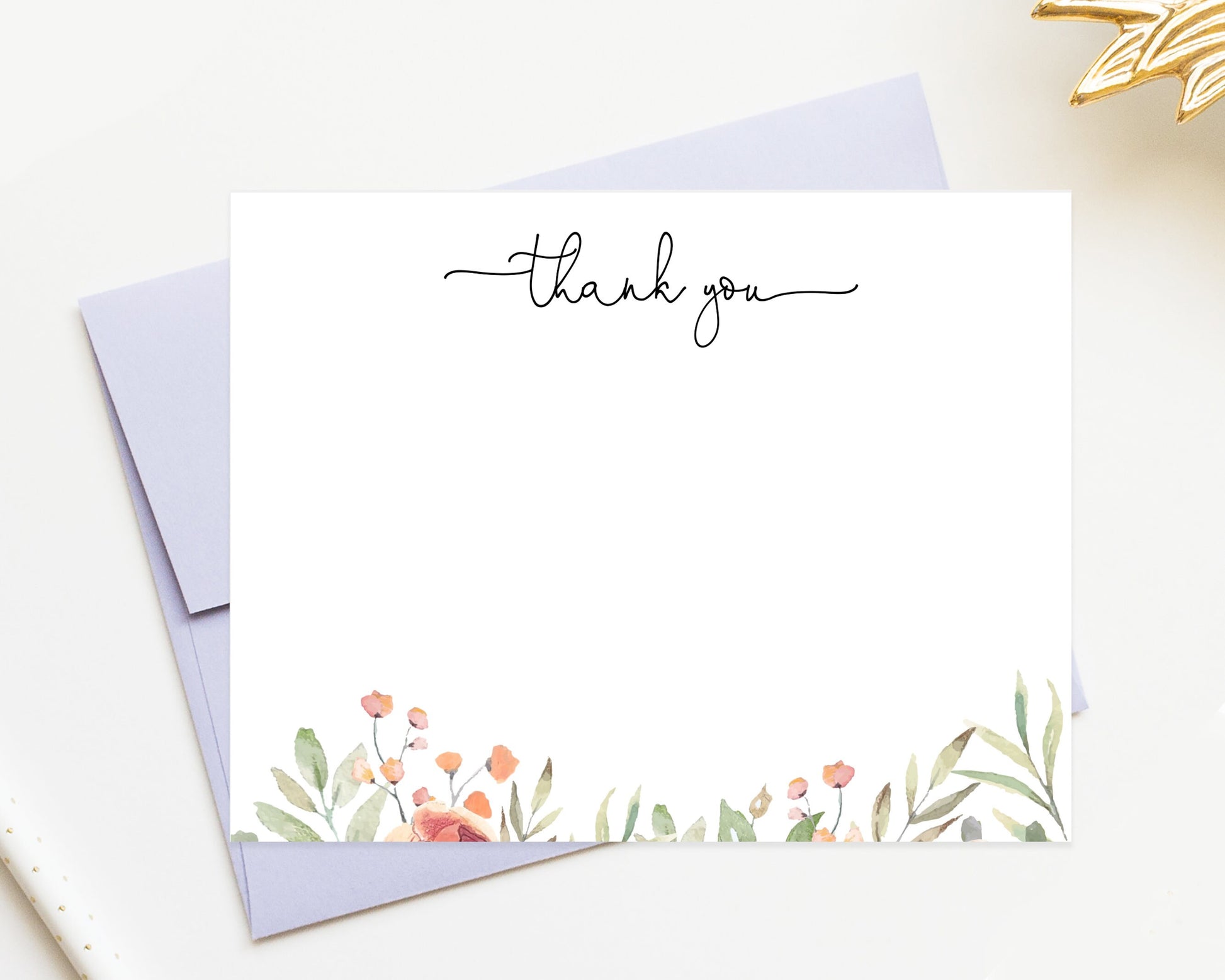 Floral Thank You Notecards, Custom Stationary Thank You Letter with Watercolor Flowers, Colorful Simple Stationary Set with Envelopes