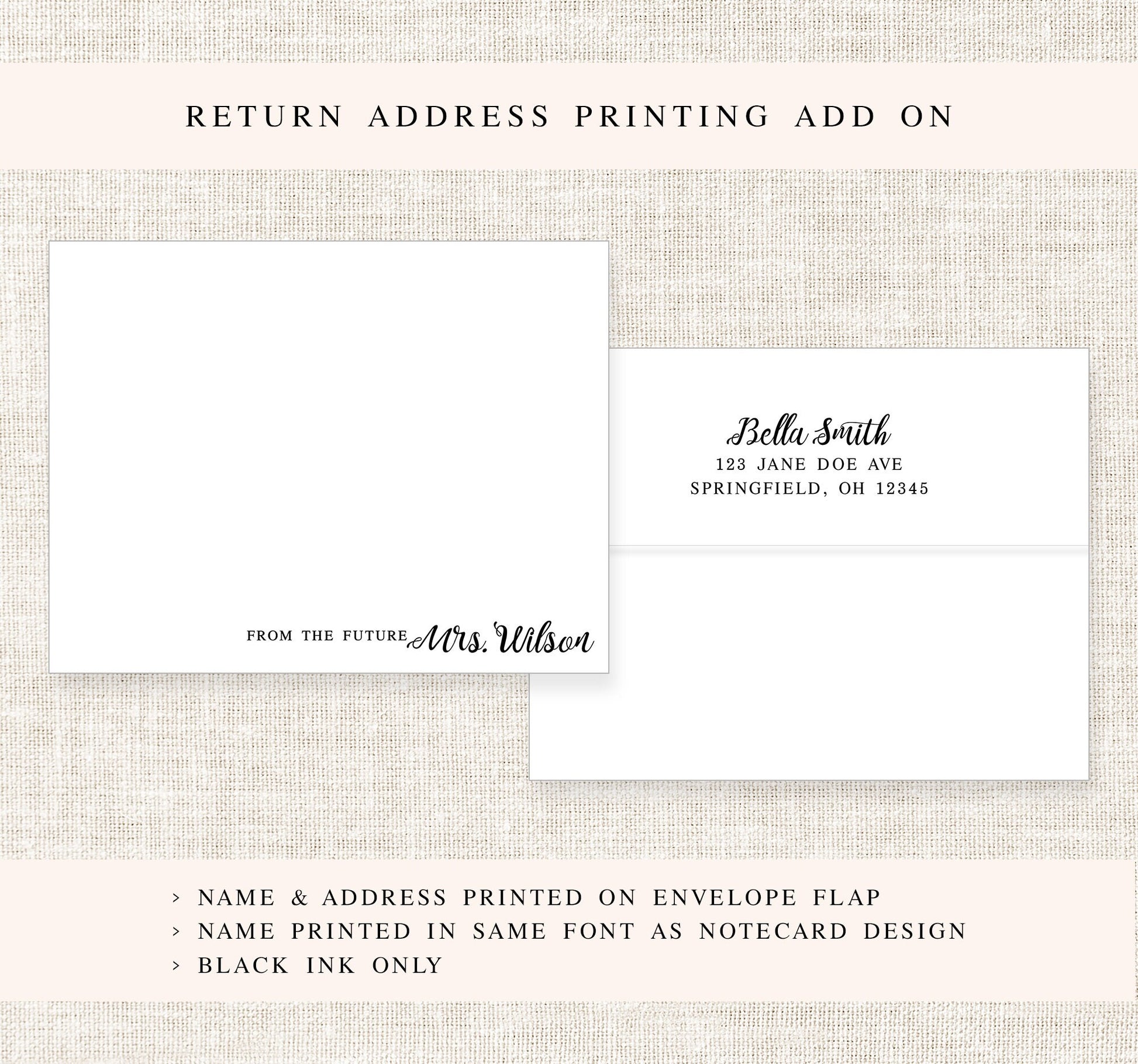 Future Mrs. Calligraphy Personalized Stationery, Bridal Shower Stationary Flat Cards with Envelopes, Wedding Personalized Note Card Set