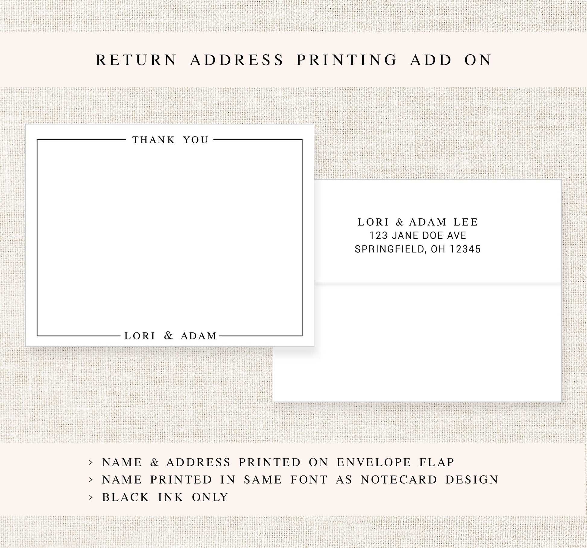 Modern Bordered Personalized Stationery Note Cards, Thank You Border Stationery, Thank you Flat Cards, Simple Personalized Gift for Family