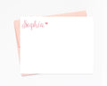 This is a set of personalized A2 sized stationery flat cards. Printed on premium 110 lb heavy cardstock with your choice of ink colors and envelope colors. Each set comes with the same number of envelopes.