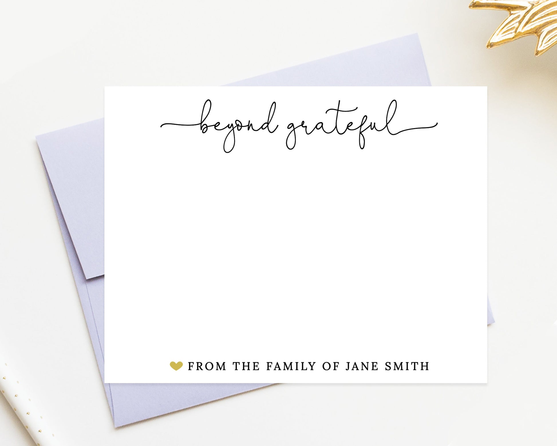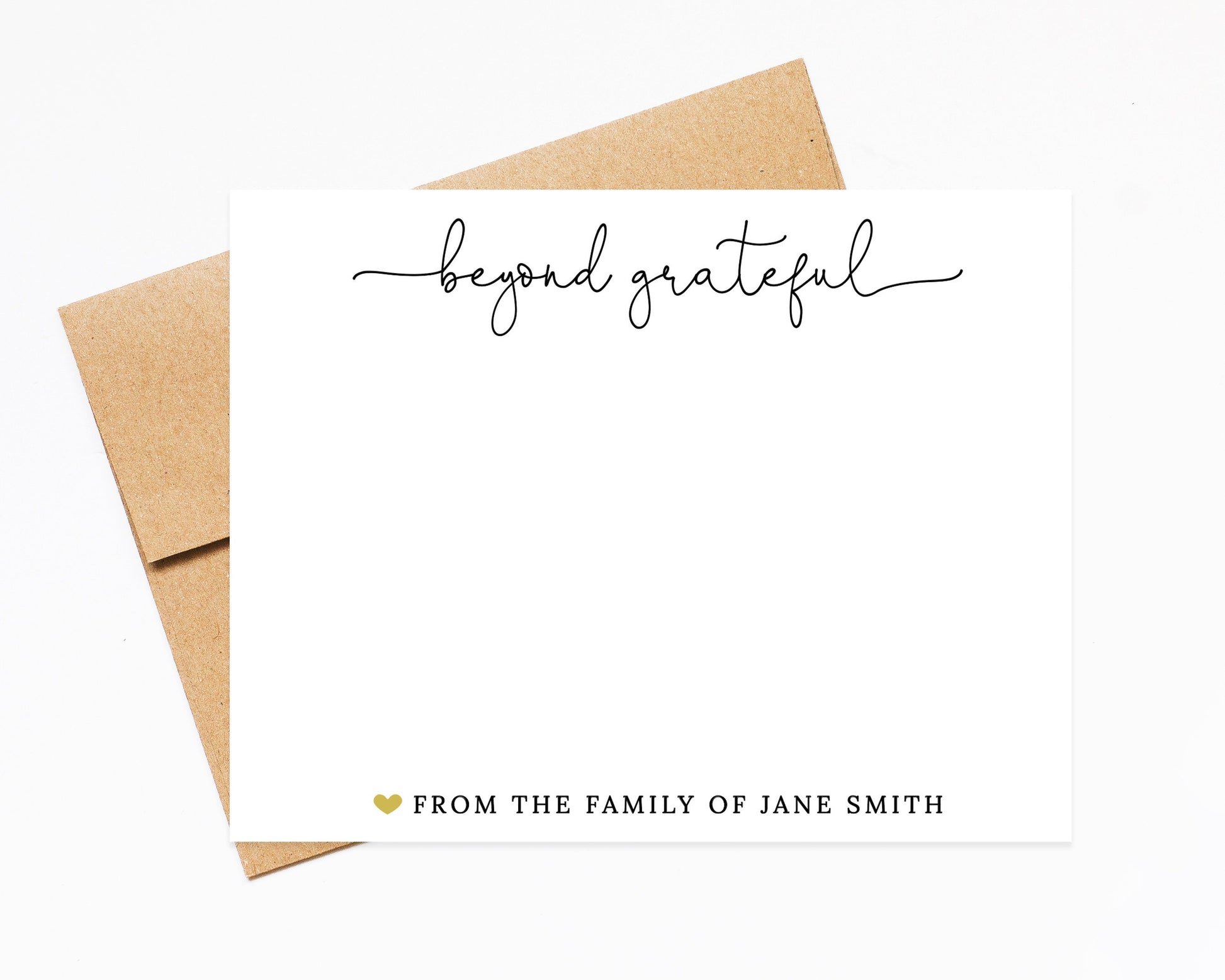 Personalized Beyond Grateful Thank You Card for Any Occasion, Thank You Stationery with Heart, Simple Thank You Card Set with Envelopes