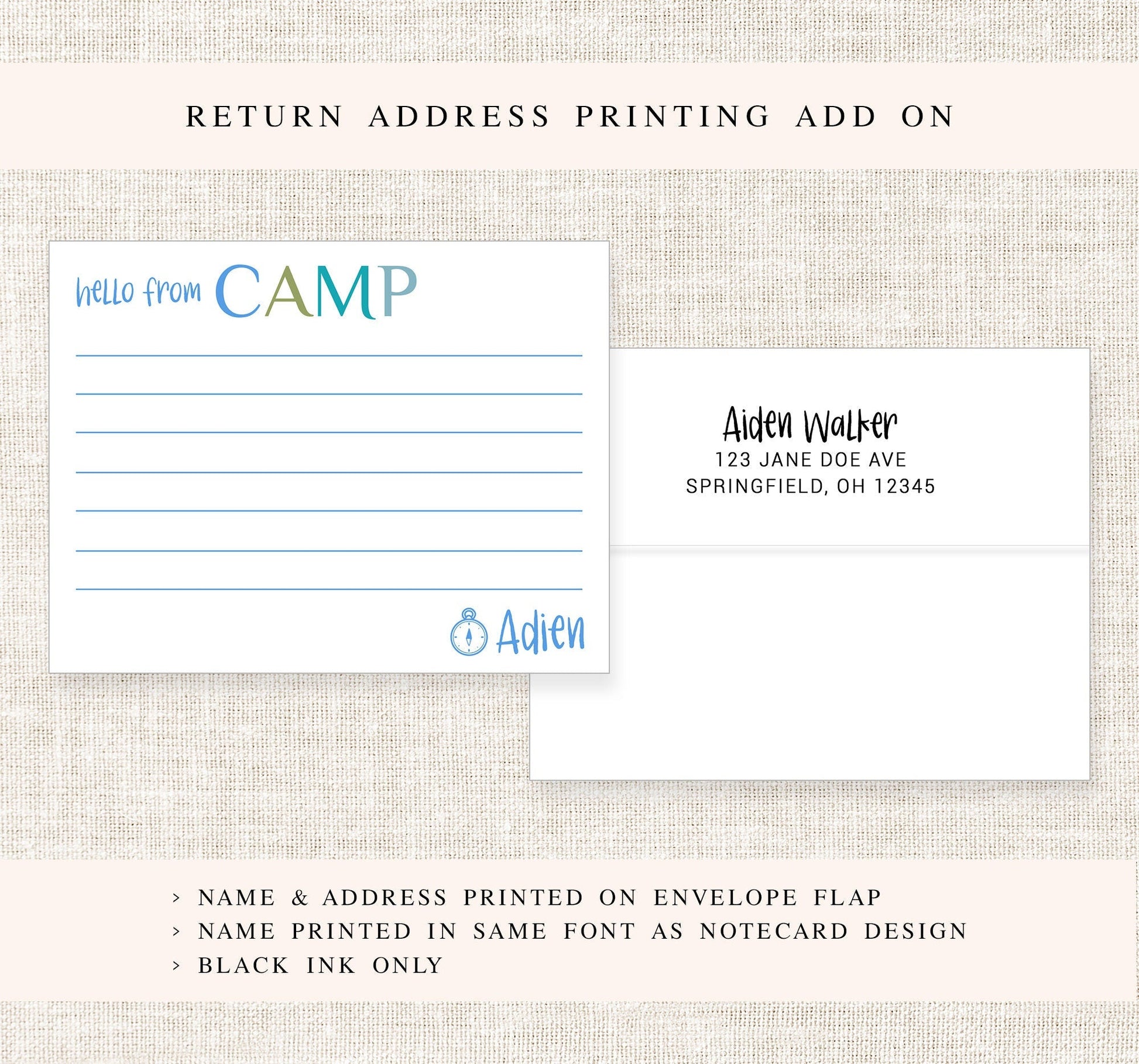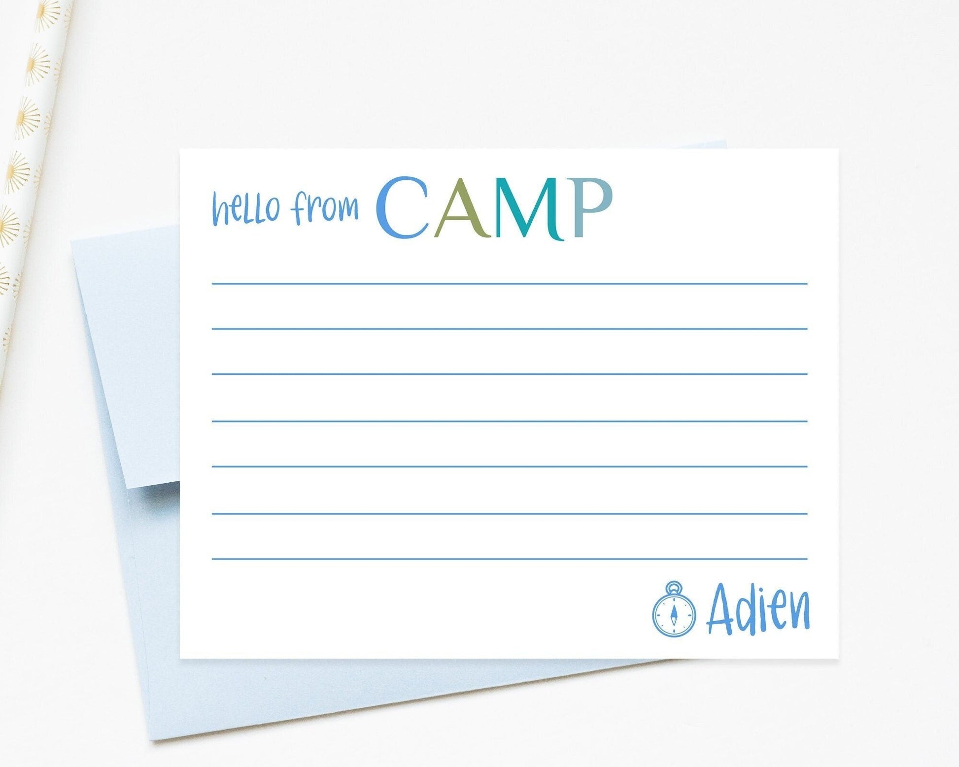 Personalized Camp Stationery Set For Boys, Custom Stationary with Lines, Cute Summer Notes for Kids, Personalized Gift for Him from Camp