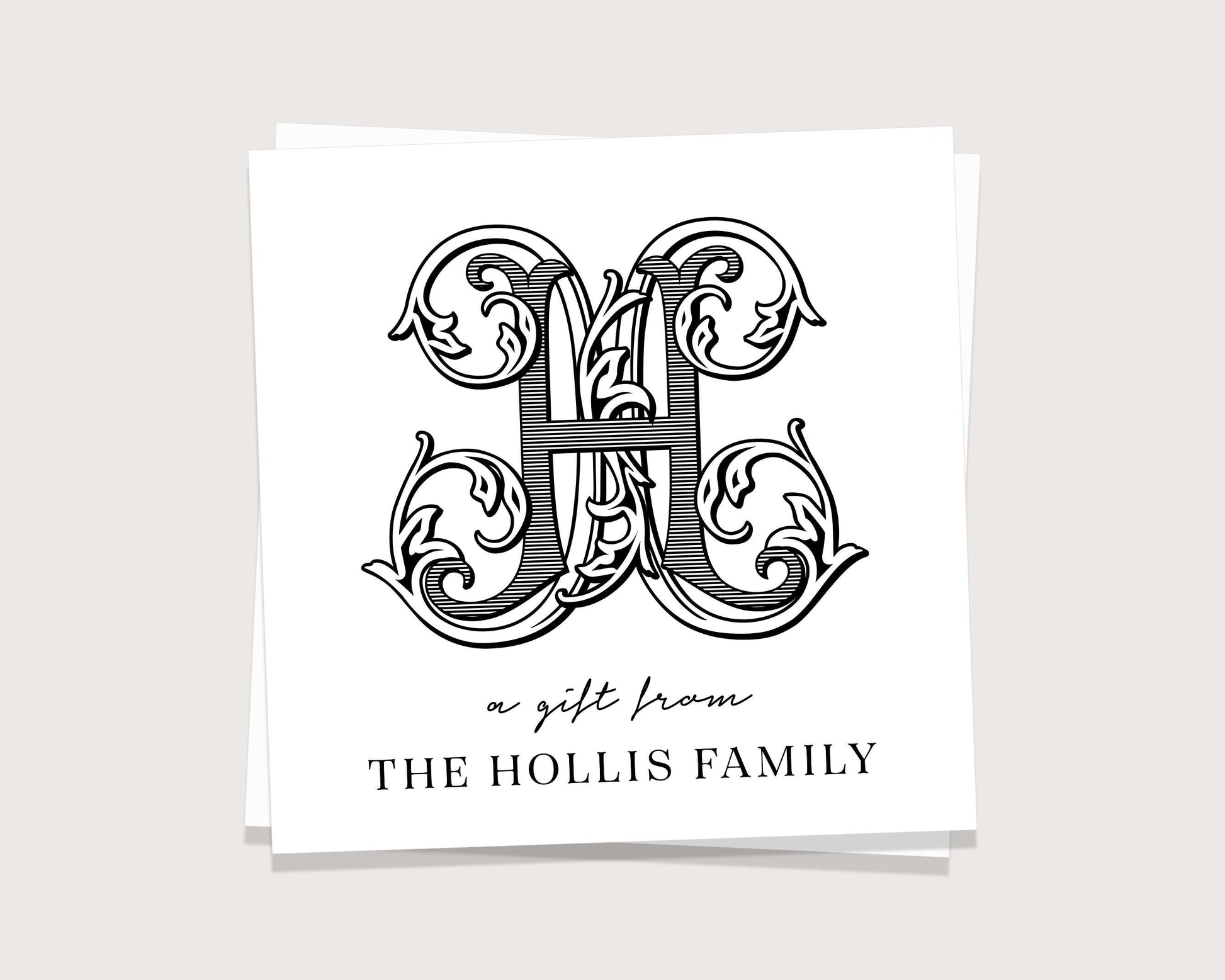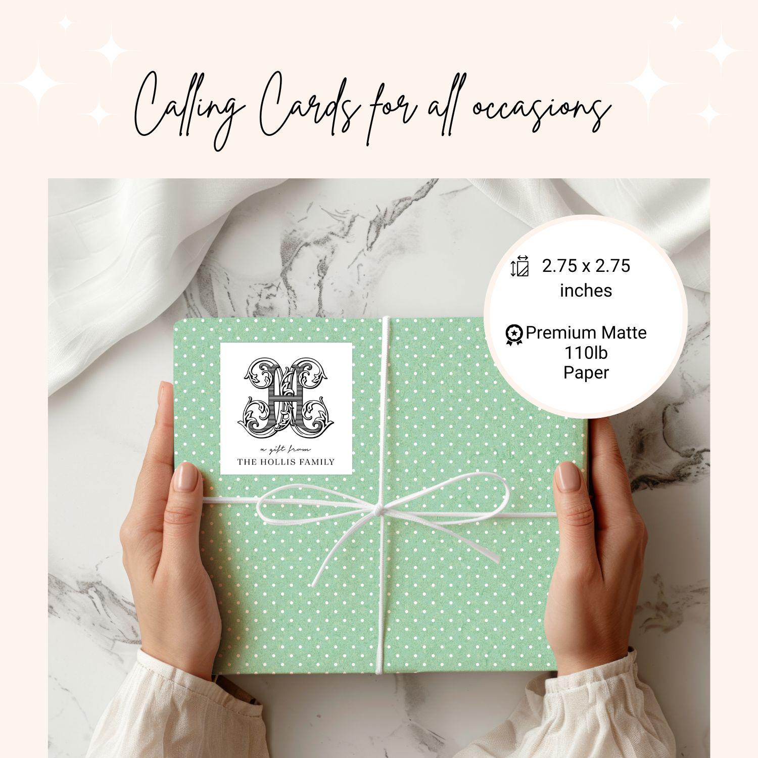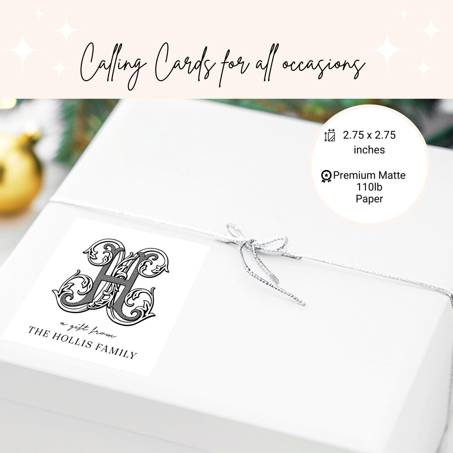 Personalized Family Monogram Gift Tag, Enclosure Flat Card Stationary, Printed Gift Tag Pack of 15, Customized Stationery Calling Card