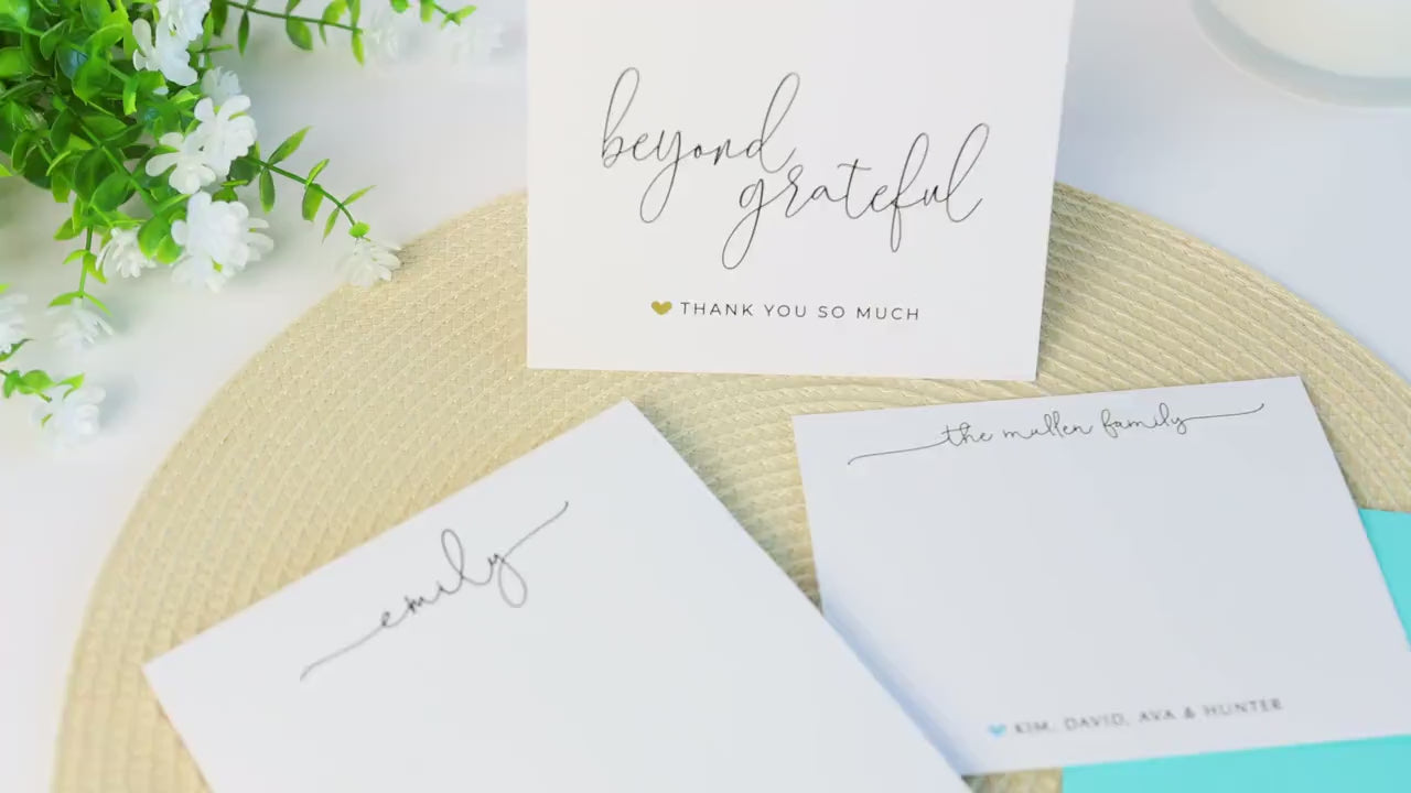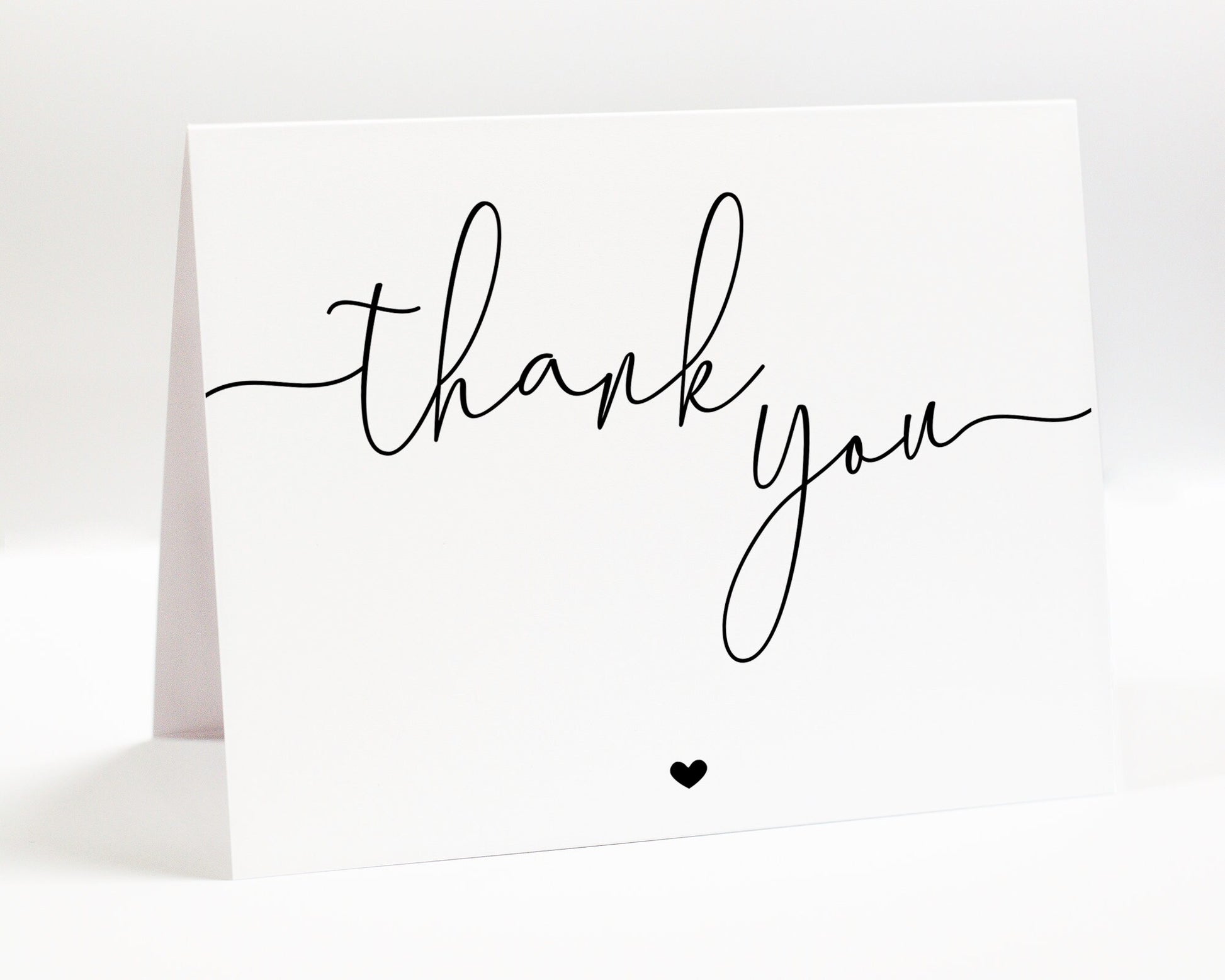 Personalized Folded Thank You Cards with Heart, Folded Script Thankful Cards with Envelopes, Simple Notecard Blank Inside for Notes