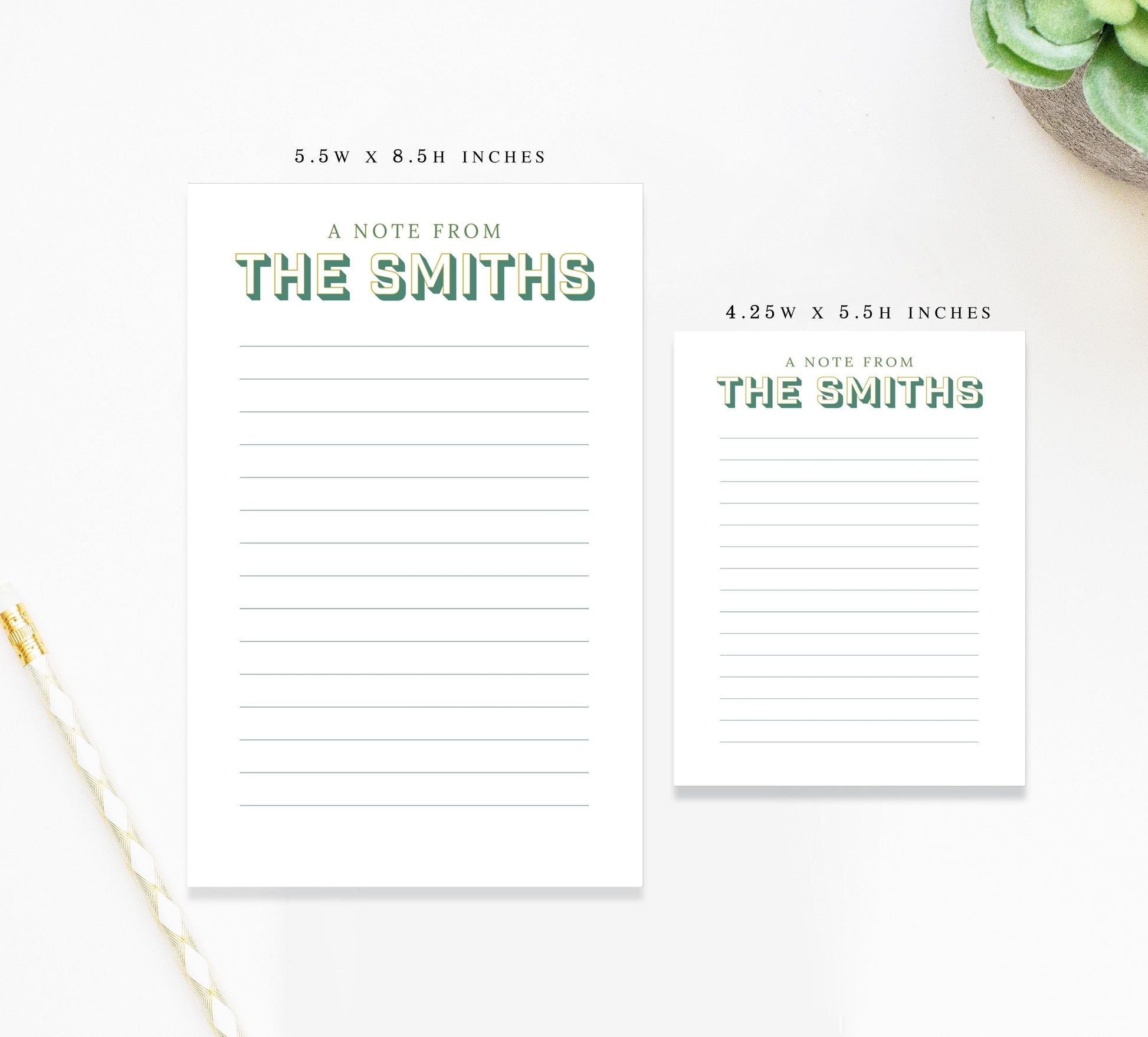 Personalized Gift Notepad for Family, Personalized Custom Note Pad, Family Stationery Notepad for School
