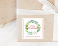 Personalized Merry Christmas Stationary Calling Card Sticker, Christmas Wreath Enclosure Square Card, Printed Family Holiday Gift Tag