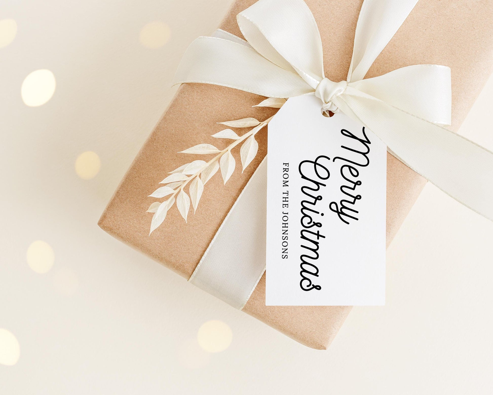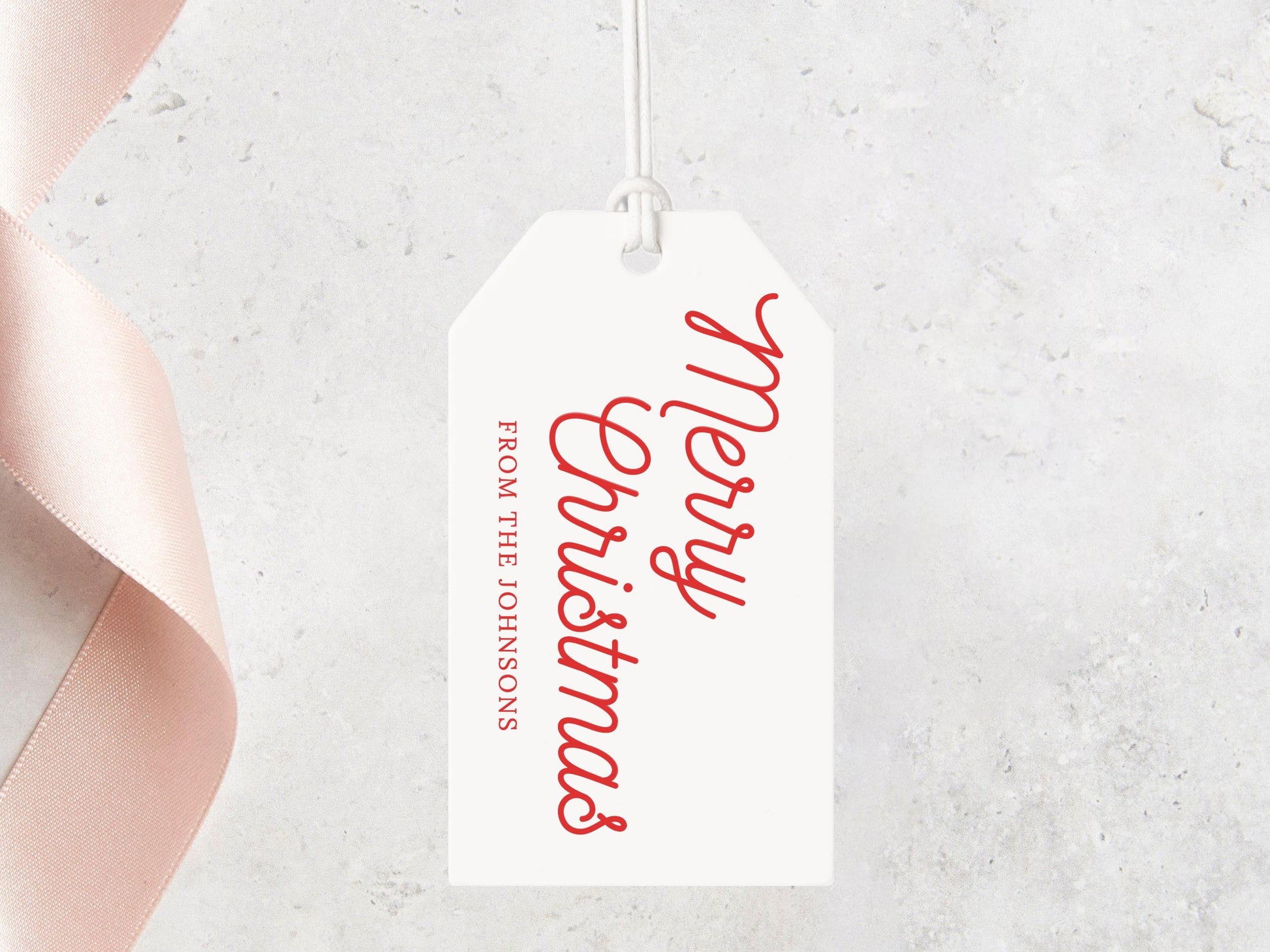 Personalized Modern Merry Christmas Gift Tags, Printed and Shipped Tags, 2 x 3.5 inch Favor Tags, Tags for Wine Gifts Holiday Party Favor