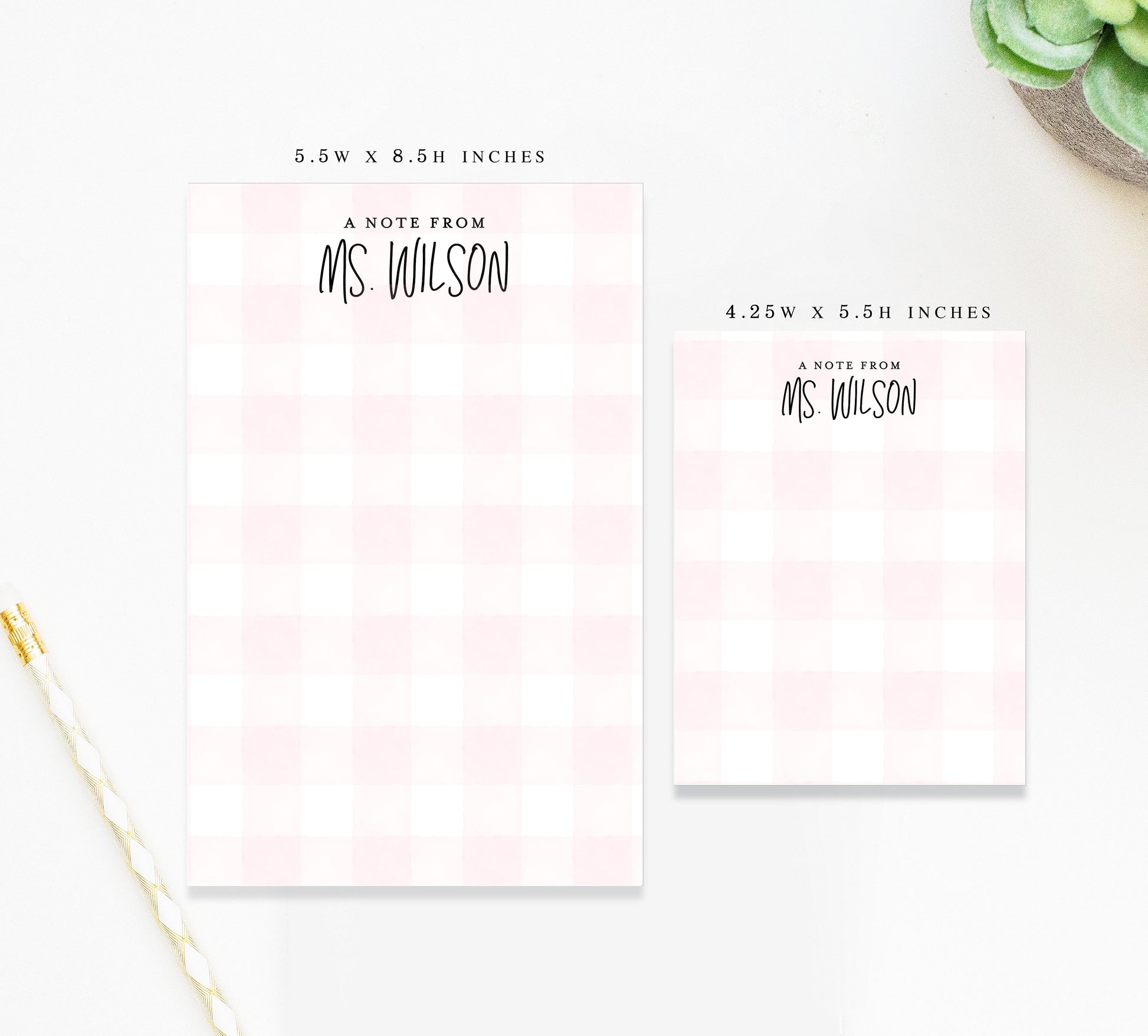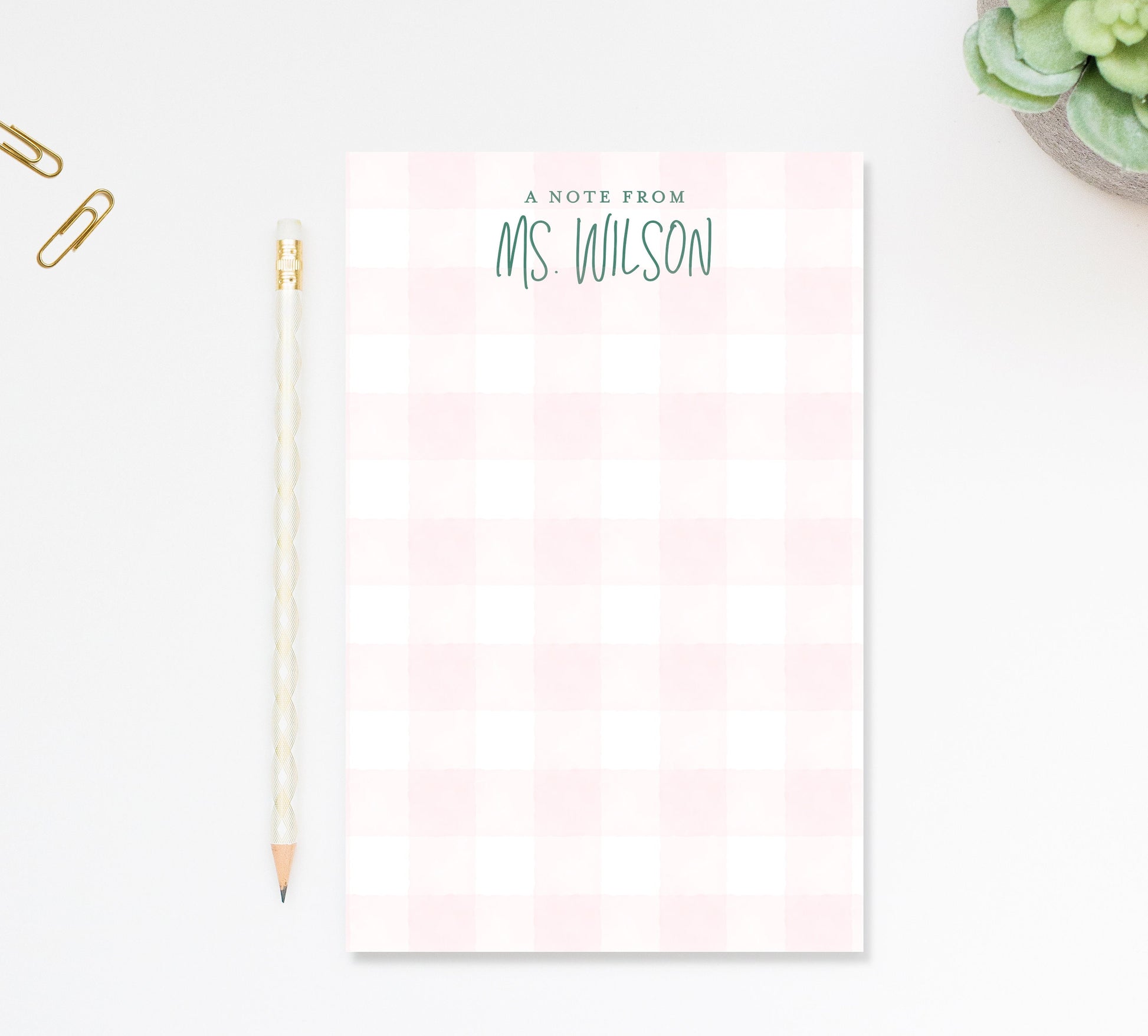 Personalized Notepad For Teacher with Gingham Pattern, Custom Notepad For Her, To Do List Notepad for Back To School Gift For Art Teacher