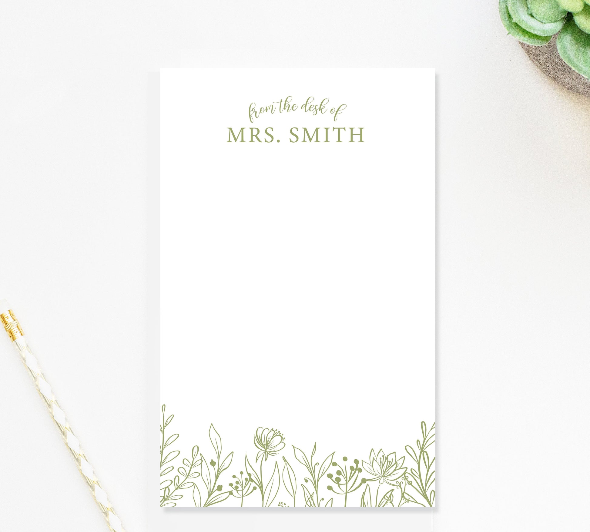 Personalized Notepad Gift for Teacher, Botanical Leaves Notepad, Personalized Notepad Gift for Her Him, Customized Stationary Under 25