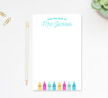 Personalized stationery notepads printed on premium 80lb white paper backed with thick chipboard for support. These notepads are perfect for teacher appreciation week, Christmas presents, supplies for back-to-school, gifts for teachers and more!
