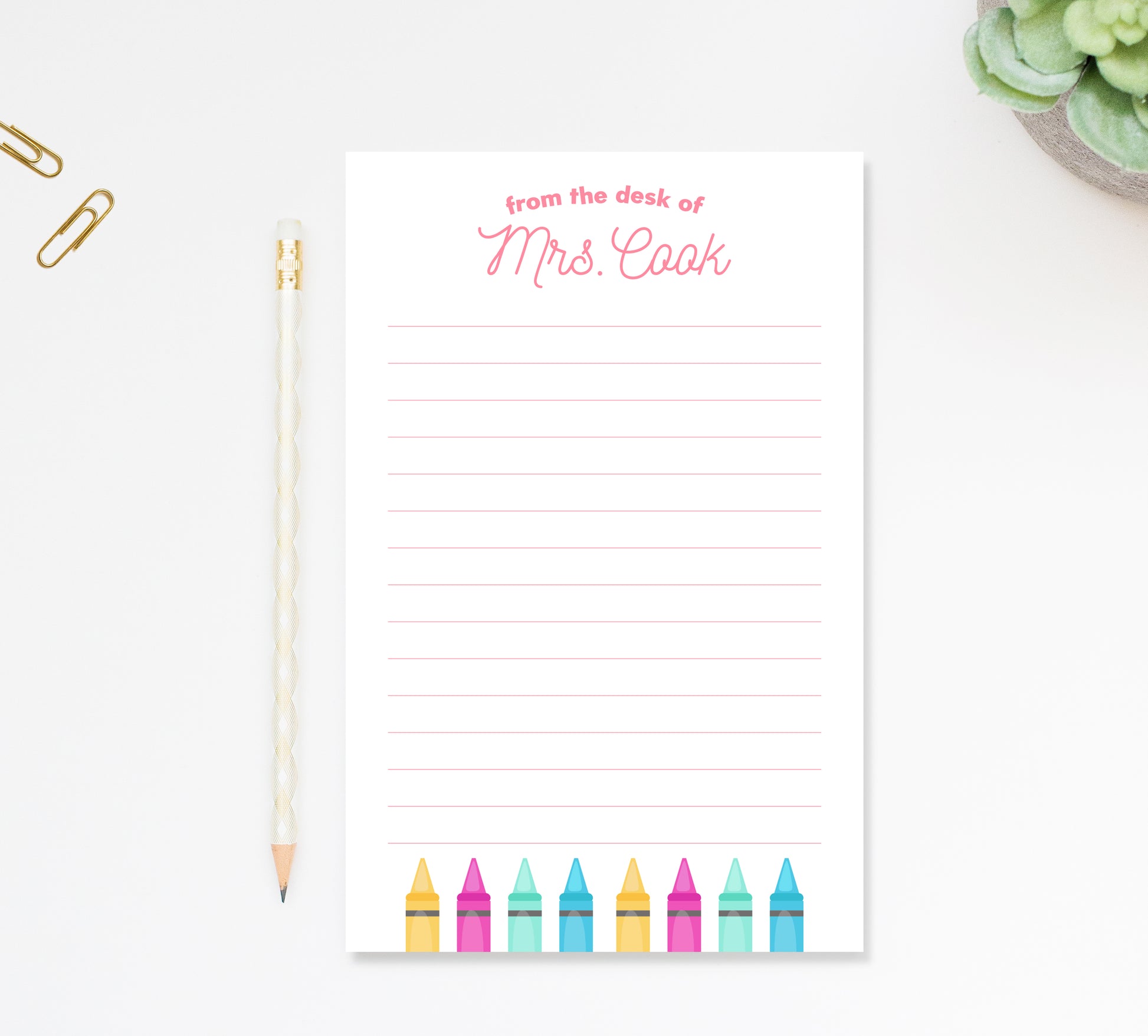 Personalized Notepad with For Art Teacher, Custom Notepad with Crayons, To Do List Notepad for School End of the Year Appreciation Gift