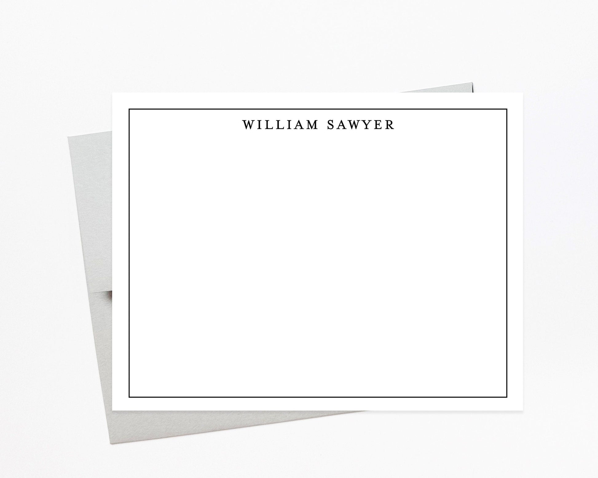 Personalized Simple Bordered Stationary, Modern Stationary Kit Notecards For Him, Thank You Personalized Correspondence Card Stationery Set