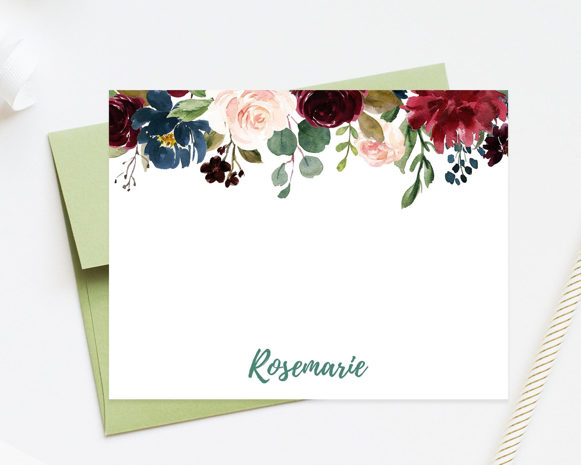 Personalized Stationary, Personalized Notecards Watercolor Stationery For Letters, Flat Personalized Note Cards With Envelopes