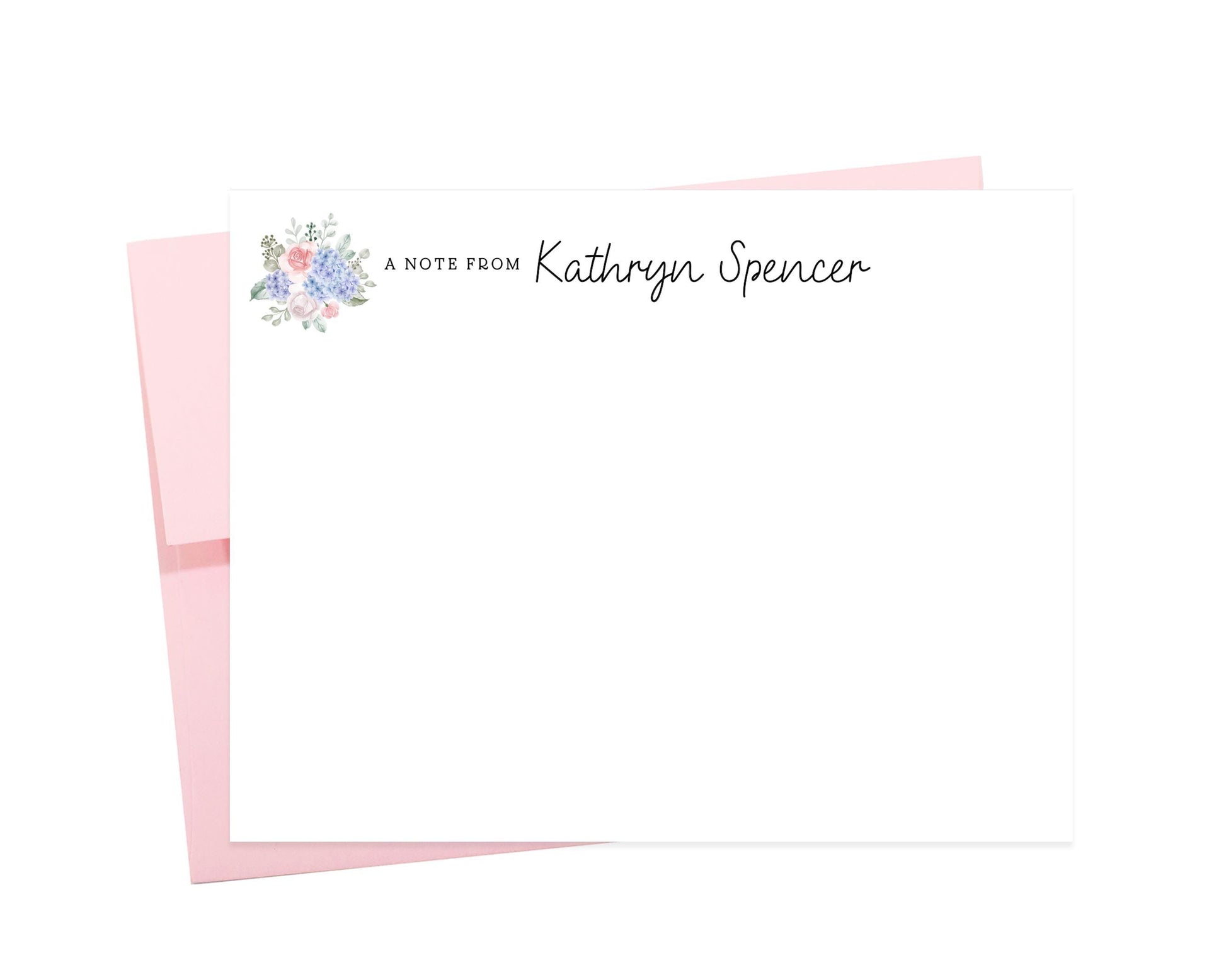 Personalized Stationery Cards with Hydrangea Flower for Women, Watercolor Floral Stationary Card with Hydrangea in Handwritten Script Font