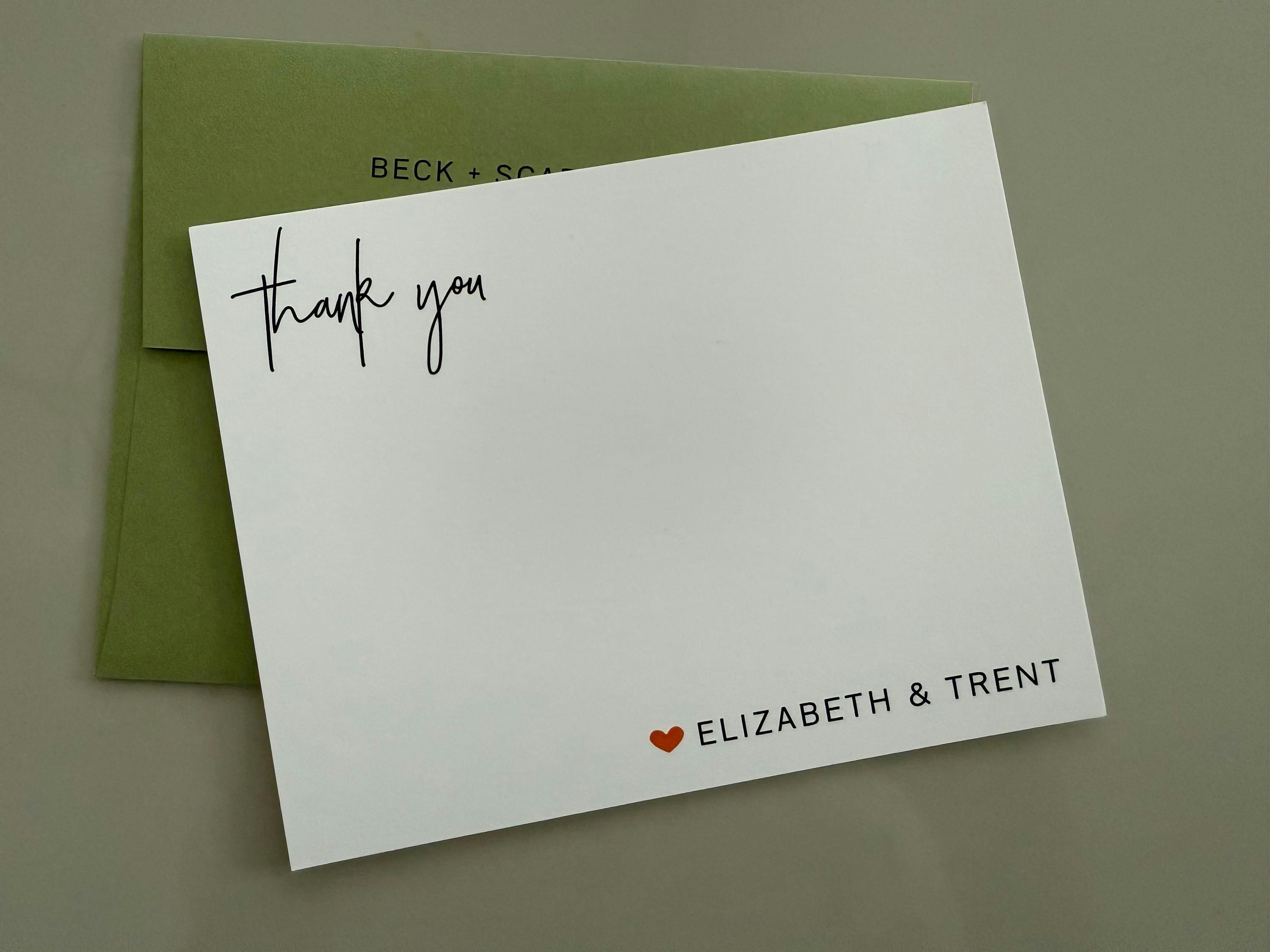 Personalized Stationery for Couple with Heart, Envelopes, Thank You Personal Stationary, Modern Thank You Card Gift Set, Newlywed Stationary