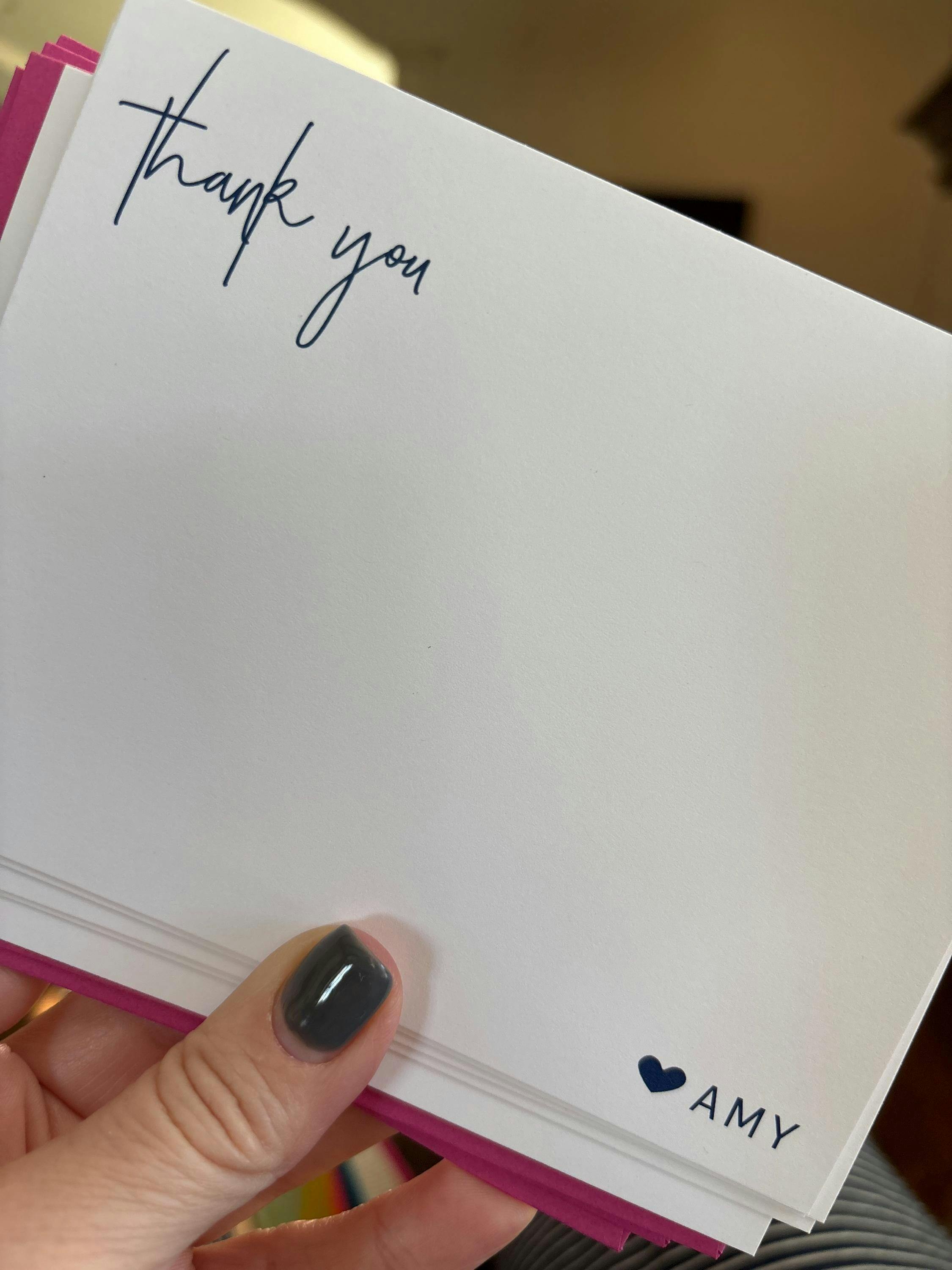 These are my go-to personalized thank you cards! I have purchased many and keep coming back for more. I love the personalization on the card, and the option for the return address on the envelope.
