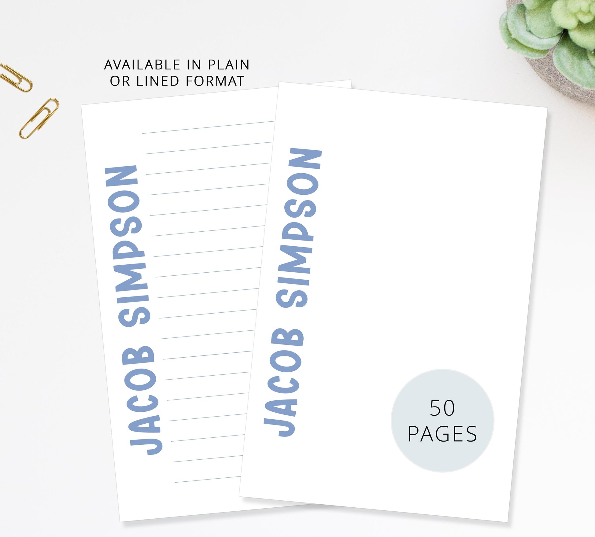 • 5.5" x 8.5" (50 pages) or 4.25 x 5.5" (40 pages)