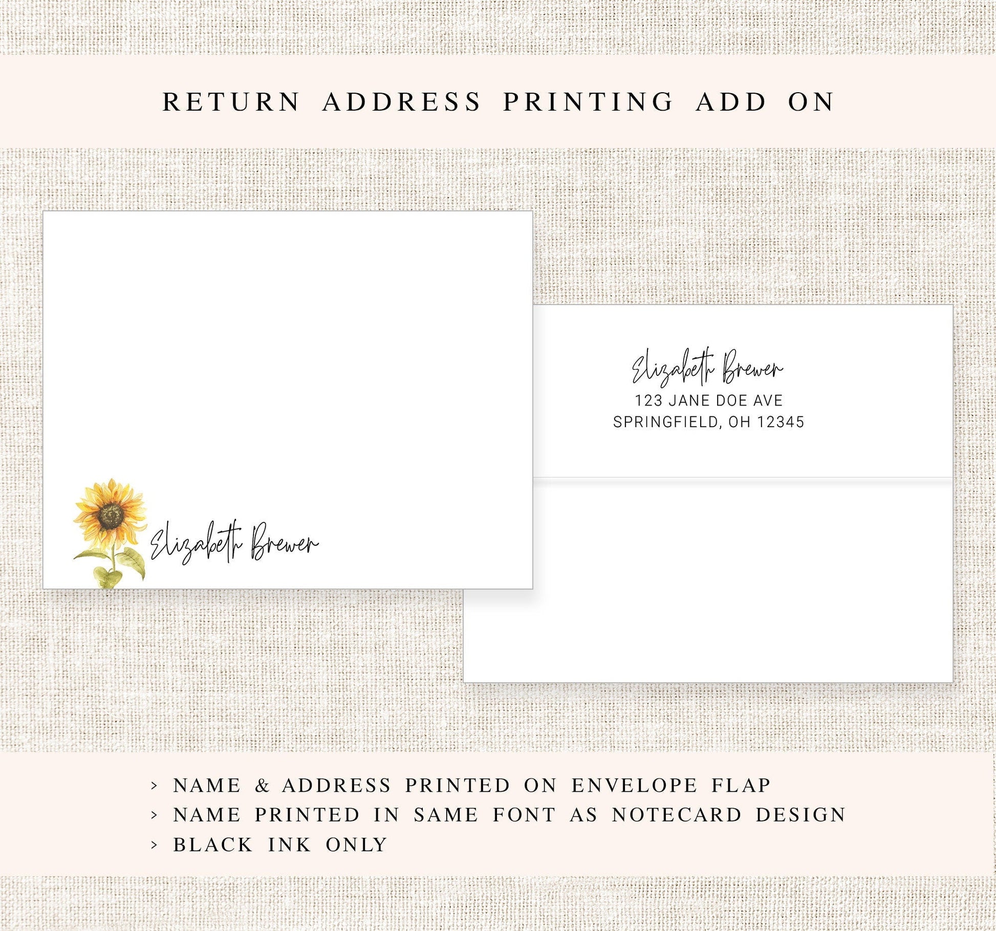 Personalized Sunflower Stationery Gift Set for Her, Sun Flower Note Cards, Sun Stationary Flat Cards with Envelopes, Personalized Stationary