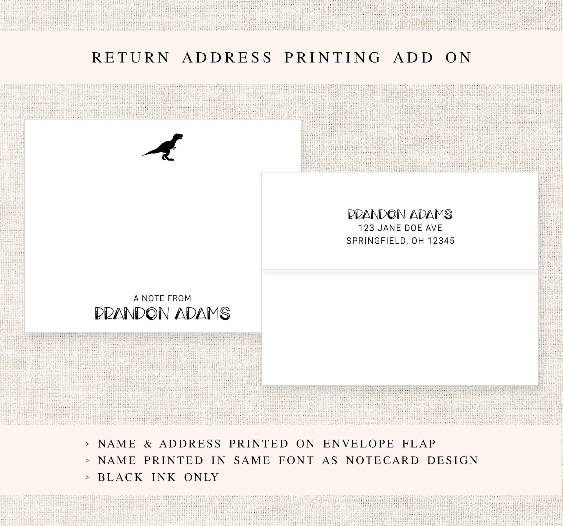 Personalized T-Rex Kids Stationery for Boys with Envelopes, Dinosaur Stationary Notecards for Him, Stationary Gift Set, Dino Stationery Card