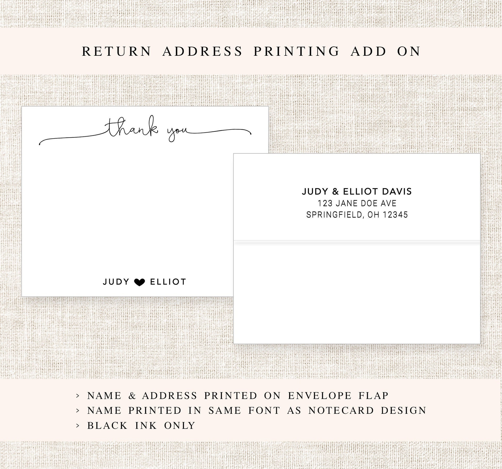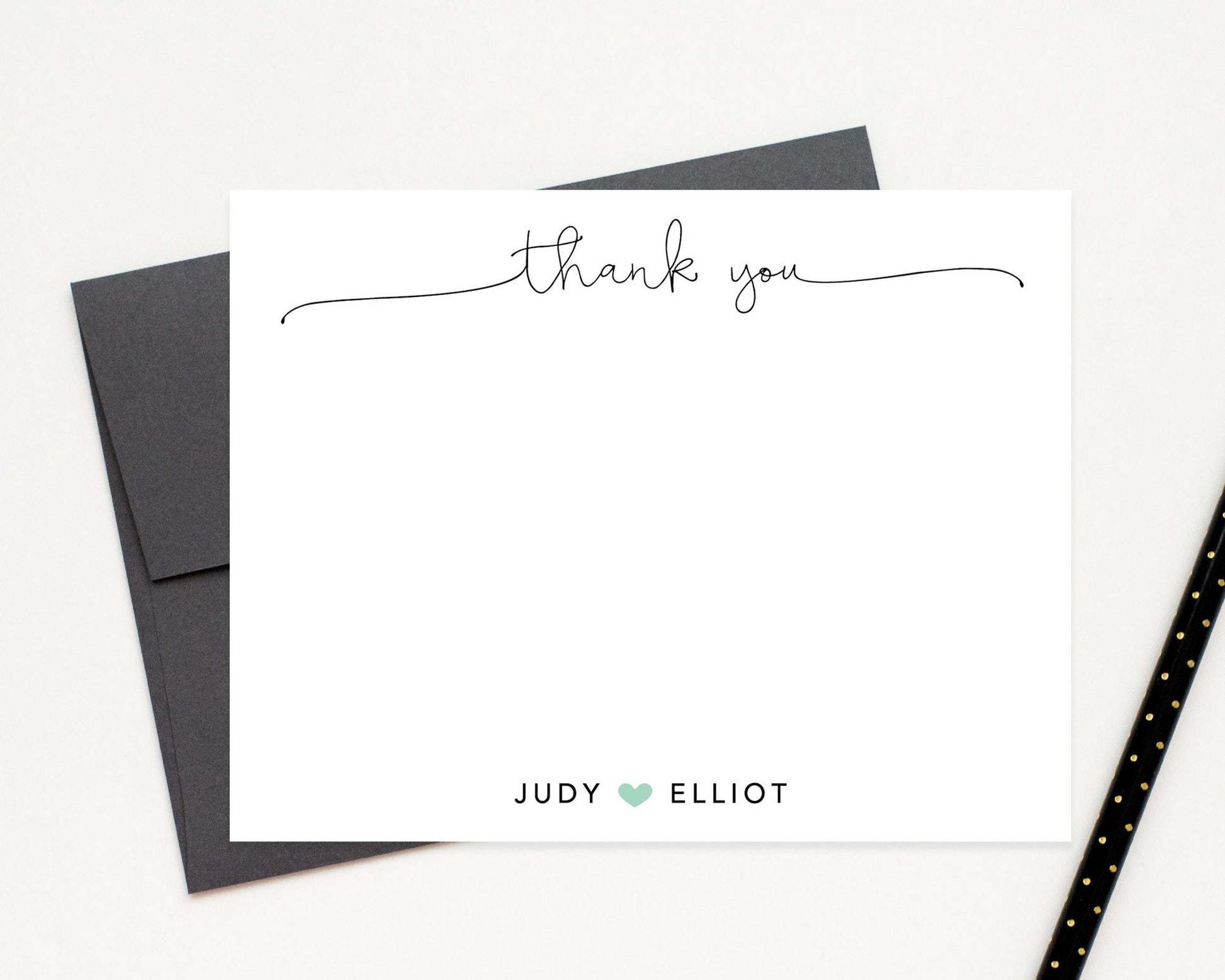 Personalized Thank You Note for Couples, Thank You Stationery, Elegant Script Thank You Notecard Envelope, Newlywed Gift , Cute Heart Letter