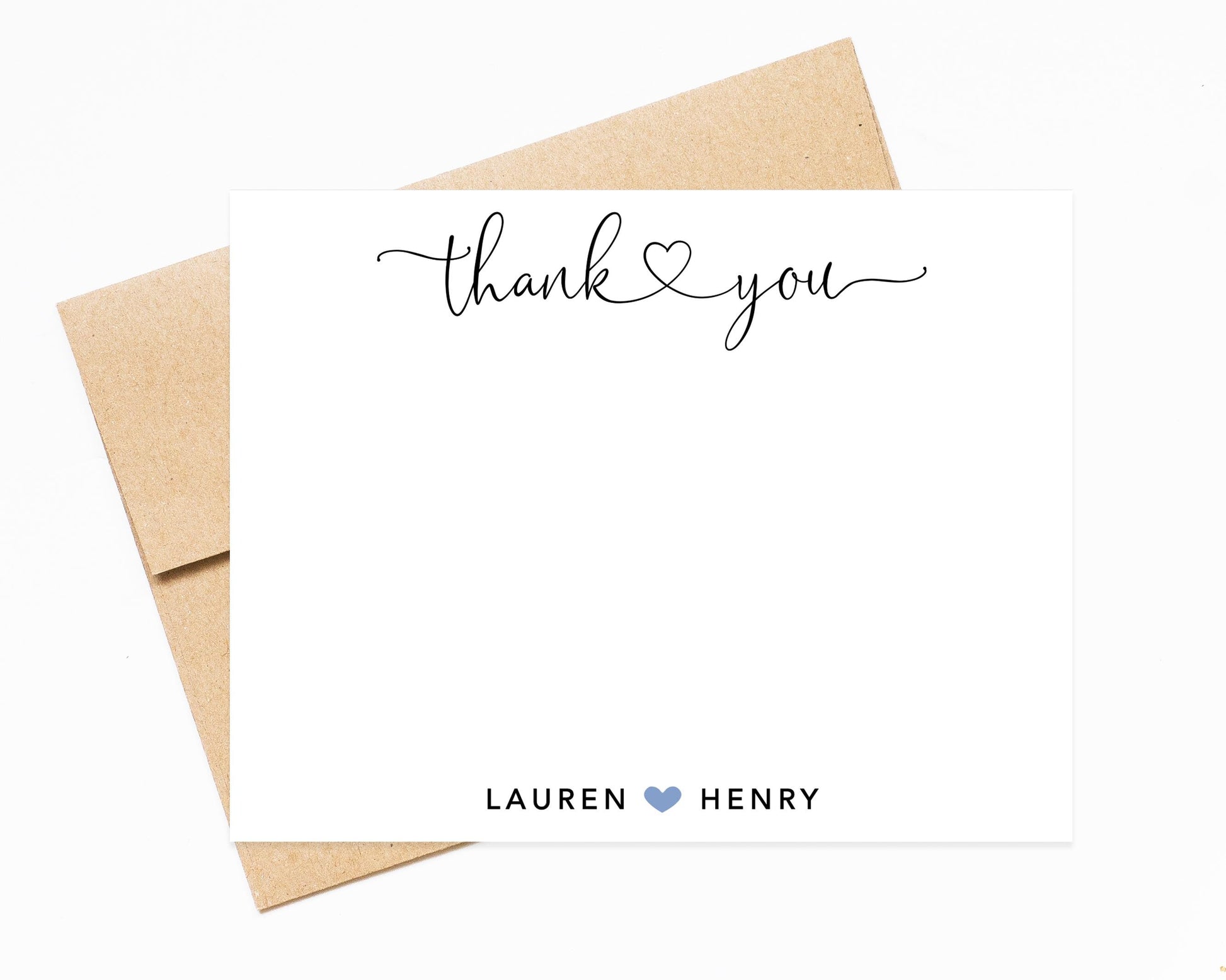 Personalized Thank You Stationery With Heart for Notes with Envelopes, Elegant Script Thank You Cards for Couples, Newlywed Stationary
