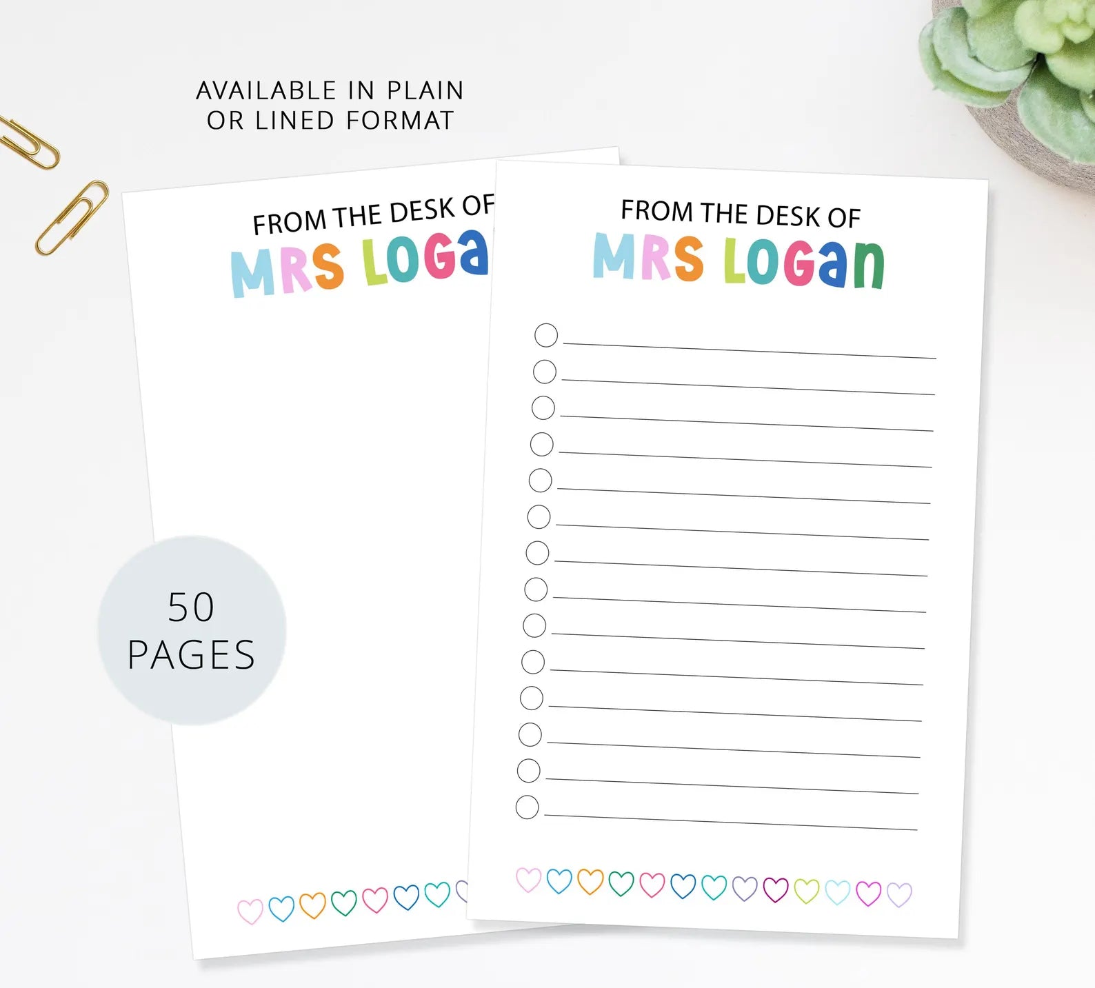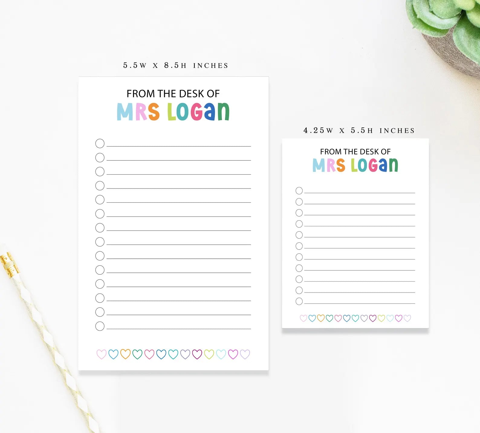 Personalized Thank You Teacher Notepad Gift, Custom Stationary Notepad with Hearts, To Do List Notepad School End of the Year Appreciation