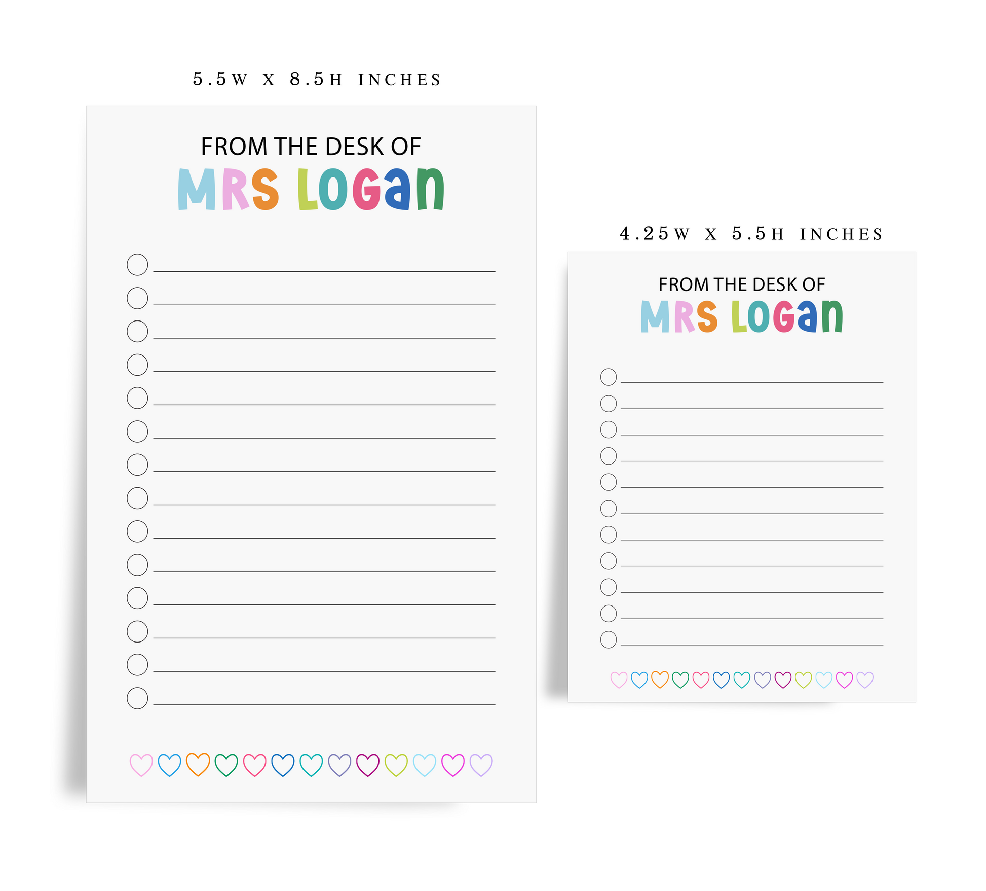 Personalized stationery notepads printed on premium 80lb white paper backed with thick chipboard for support. These notepads are perfect for teacher appreciation week, Christmas presents, supplies for back-to-school, gifts for teachers and more!
