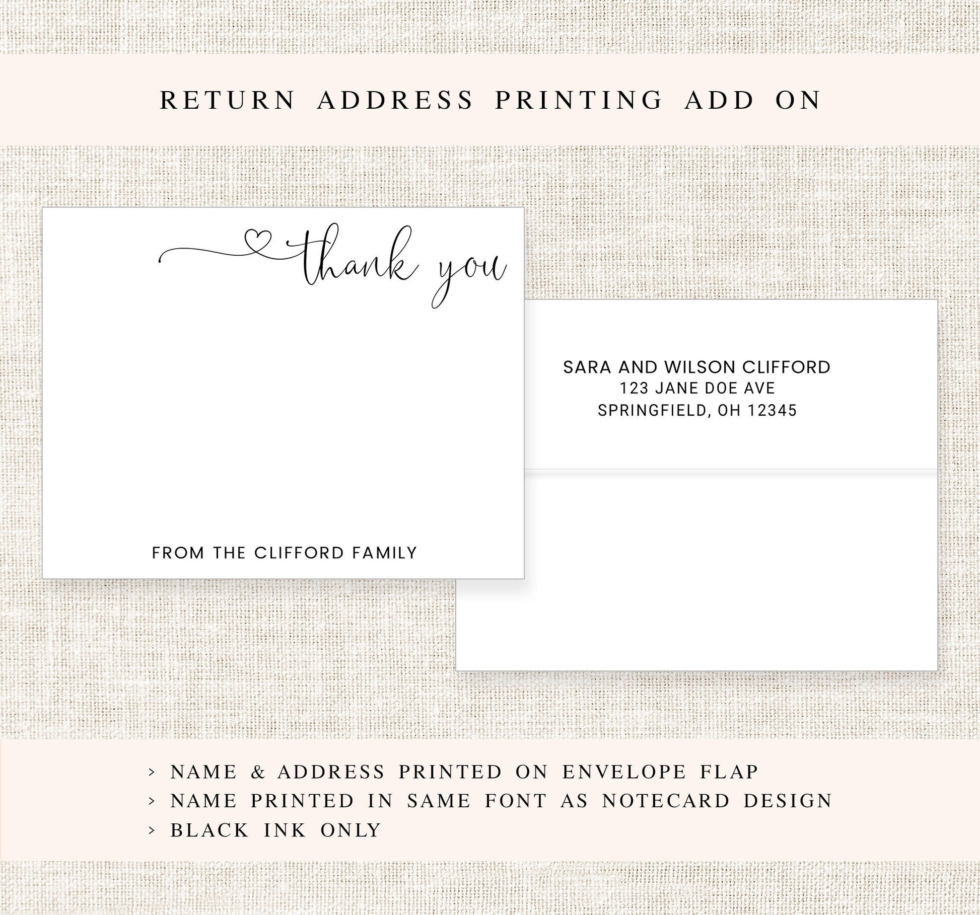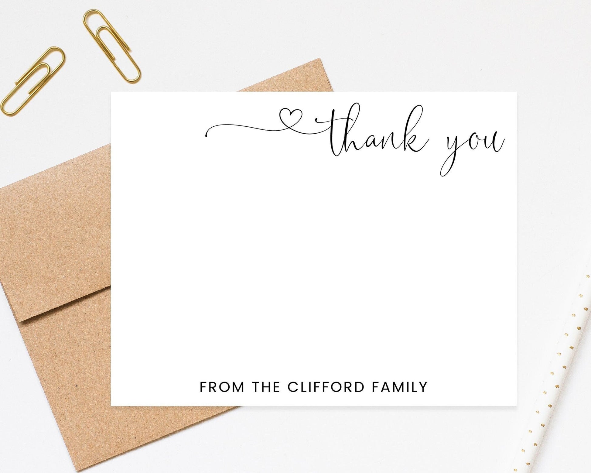 Thank you Personalized Stationary for Family Notecard, Stationery with Heart, Simple Personalized Cards and Envelope Set for Couple